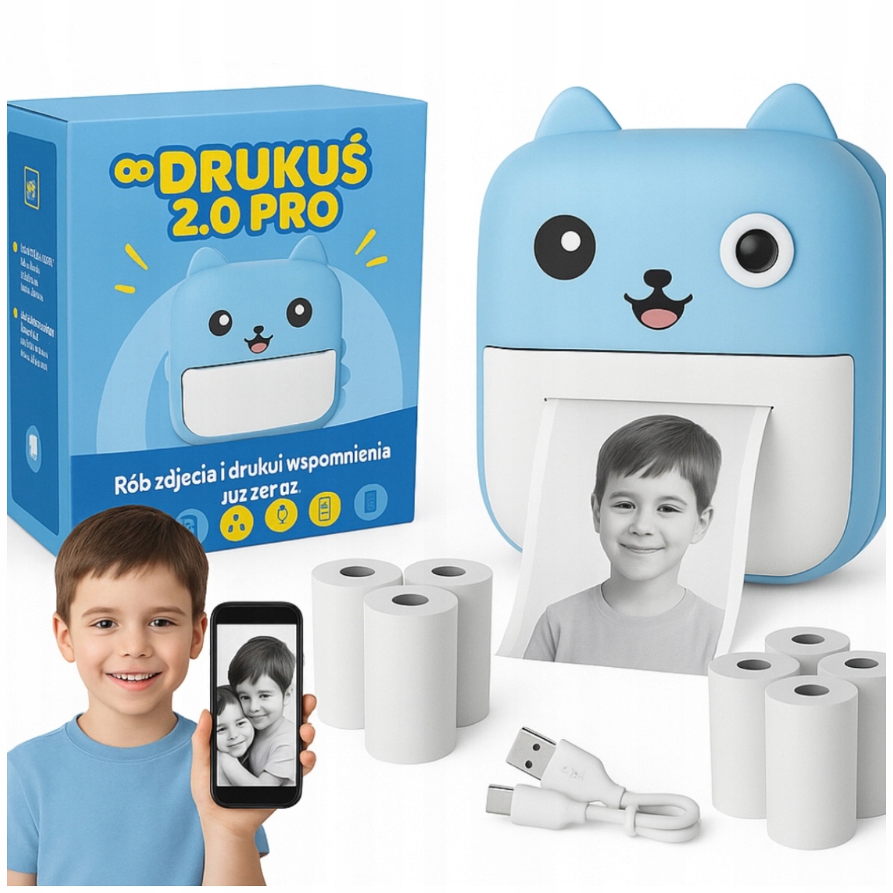 МИНИ-ТЕРМОПРИНТЕР DRUKUŚ МГНОВЕННЫЙ МАШИНА, 10 РУЛОНОВ, СИНИЙ
