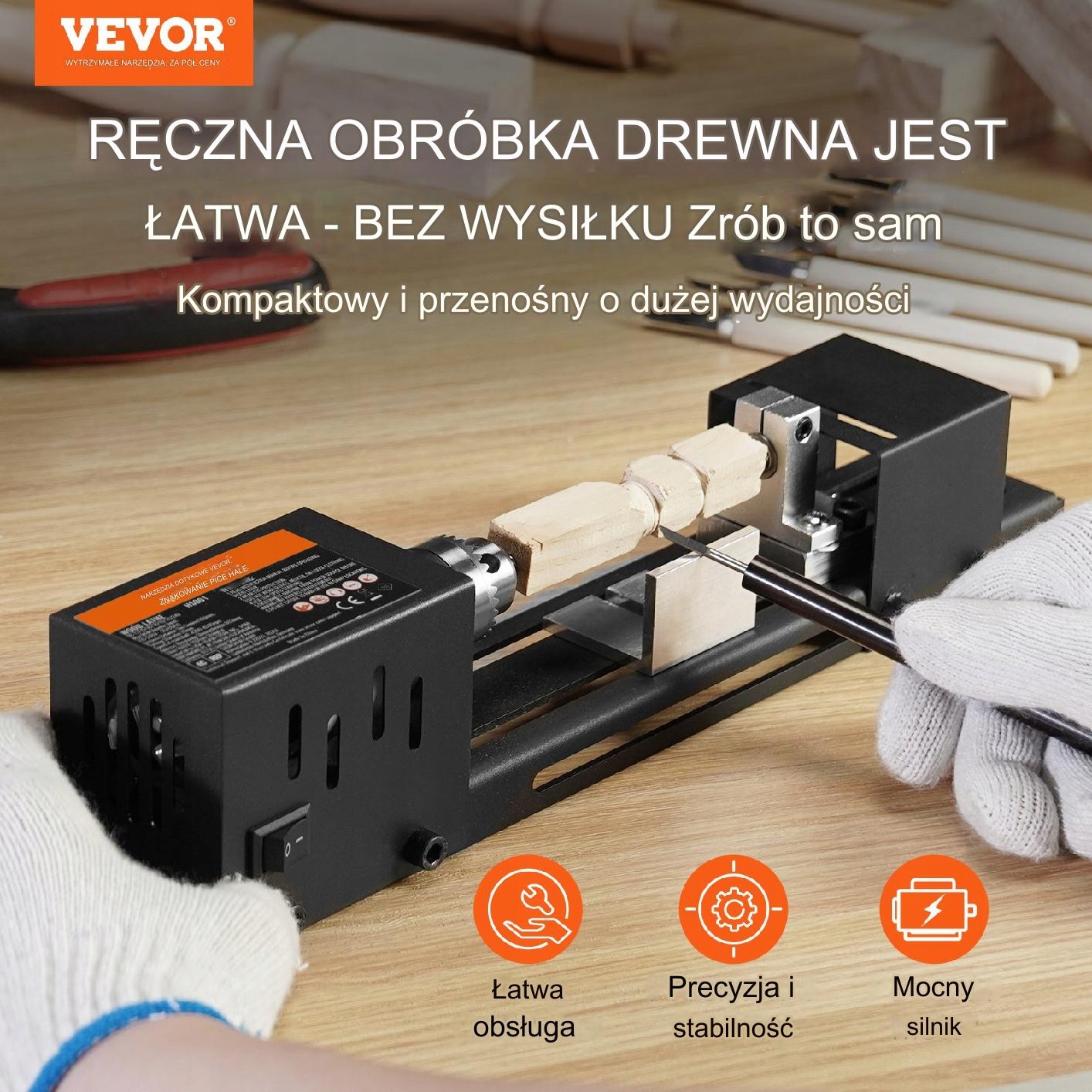 Мини-токарный станок по дереву VEVOR компактен и портативен и идеально подходит для домашних проектов. Мощный высокочастотный двигатель мощностью 96 Вт и 7 скоростей соответствуют различным требованиям к скорости резки. Мини-токарный станок поставляется с полным набором аксессуаров, позволяющих пользователям легко выполнять различные задачи по обработке дерева.