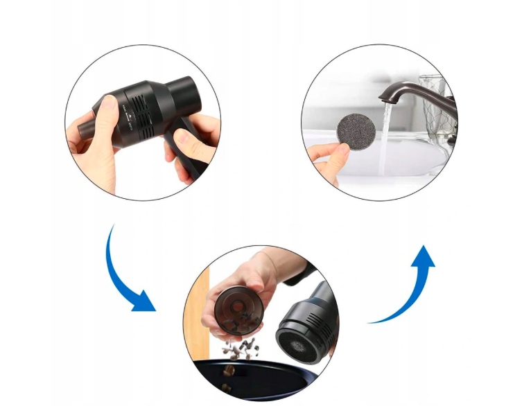 Моющиеся фильтры: мини-пылесос оснащен эффективной системой фильтров: просто откройте пылесборник и выньте мусор. сетка фильтра.
