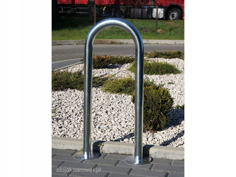 Крепление U-образного типа выполнено из овального профиля Ø 48,3 мм, характерно изогнутого в виде дуги, что создает нежную, но классическую структуру. Рекомендуется для размещения в городских агломерациях вблизи магазинов, школ, учреждений и офисов. Это интересная альтернатива другим стендам такого типа. С возможностью крепления на шурупы или заделки в бетон.