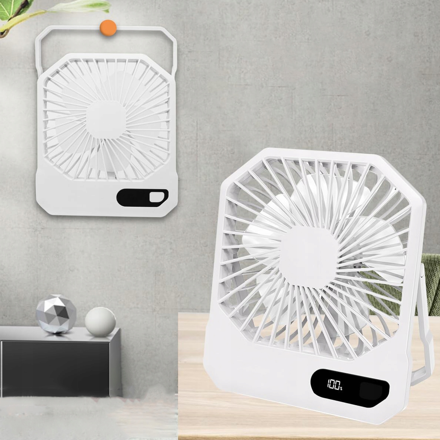 🎐 — 【Регулируемая скорость и светодиодный дисплей】: Этот мини-вентилятор USB предлагает три регулируемые скорости в соответствии с вашими предпочтениями. Первая скорость обеспечивает легкий ветерок в течение 8–10 часов, вторая скорость обеспечивает умеренный поток воздуха в течение 5–7 часов, а третья скорость обеспечивает сильный поток воздуха в течение примерно 4–5 часов. На светодиодном дисплее удобно отображается текущая скорость воздушного потока и уровень заряда батареи, что позволяет легко регулировать и контролировать работу вентилятора.