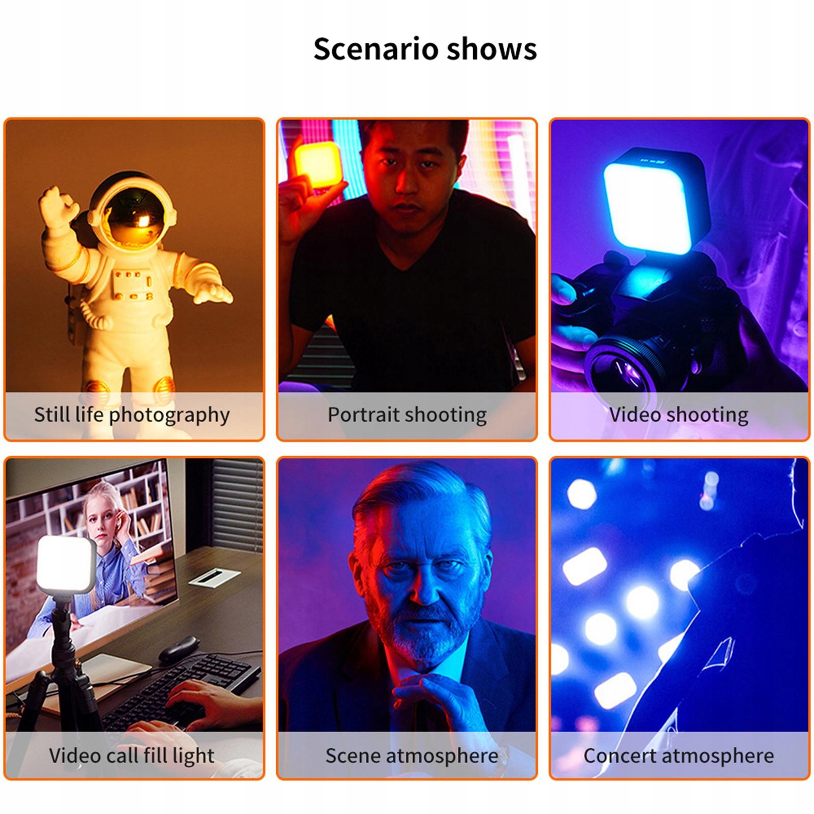 Атмосферная лампа видео Light RGB: RGB Атмосфера видео лампа с 24 типами света, такими как красочный градиент света и стробоскоп, попеременно улыбаясь на лице и рисунок сердца, удовлетворяет различные потребности ежедневной или формальной ситуации. Предоставьте режим CCT (теплый/холодный)/режим ВПГ (полный цвет RGB)/режим FX (эффект освещения атмосферы).
