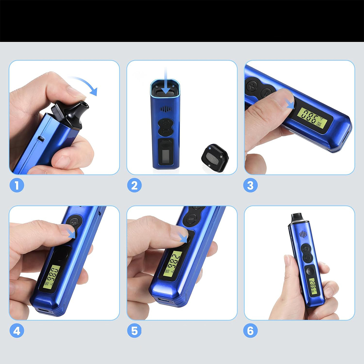 Испаритель с травами ANIXSTEAM Taurus, точный контроль температуры 93–220°C, ЖК-дисплей, магнитный выдвижной мундштук, легко чистится, идеально подходит для новичков (синий)