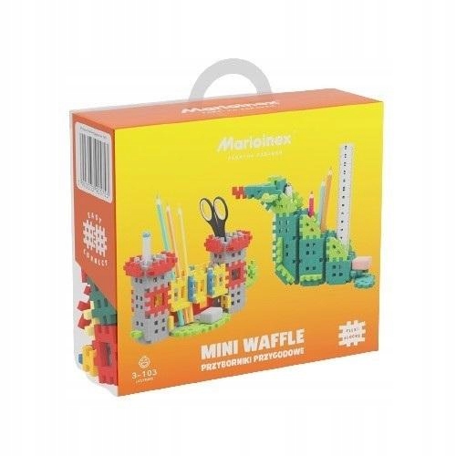 Строительные блоки Mini Waffle Инструменты для приключений. Дракон. Приручите опасного дракона, наложив на него магическое заклинание, которое превратит его в практичный ящик для инструментов на столе вашего ребенка. Вместе соберите креативный и оригинальный набор инструментов, который сделает любую домашнюю работу менее скучной. Набор инструментов «Дракон» также позволит вам организовать школьные принадлежности. Благодаря разной глубине контейнеров в них можно поместить мелки, линейку, ручки и многое другое. Развивайте пространственное воображение и творческие способности вашего ребенка, весело проводя время вместе. Замок. Ящик для инструментов на столе вашего маленького ученика не обязательно должен быть скучным. Например, это может быть королевский замок! Вместе постройте две башни замка, соединенные мостом, который не только будет выглядеть потрясающе, но и упорядочит школьные принадлежности вашего ребенка. Конструкция ящика для инструментов позволяет размещать как более мелкие, так и длинные предметы, например, мелки, ручки и ножницы. Активируйте пространственное воображение вашего ребенка, постройте замок и создайте царство знаний и обучения. Блоки производства Польша. Блоки и упаковка из возобновляемых и переработанных материалов. Для детей от 3 лет.