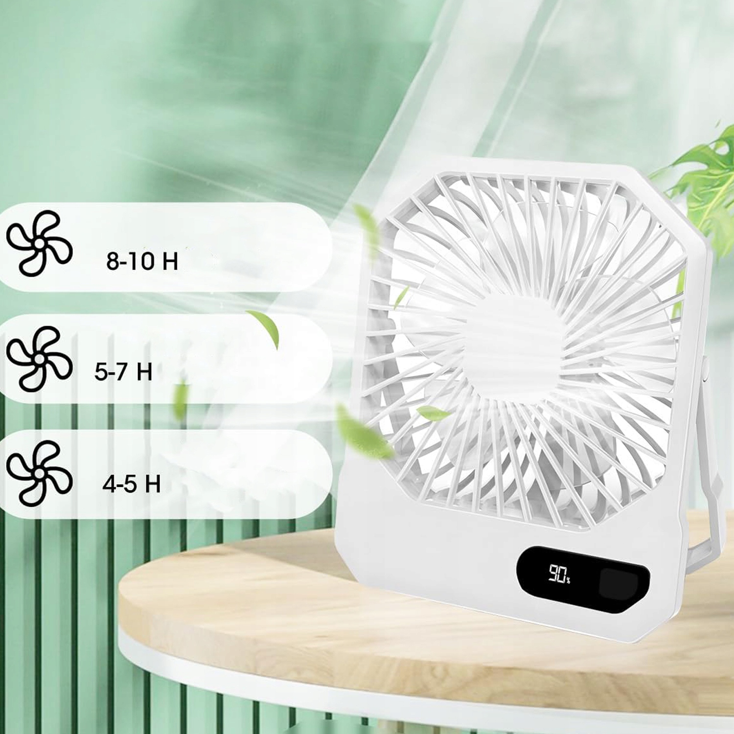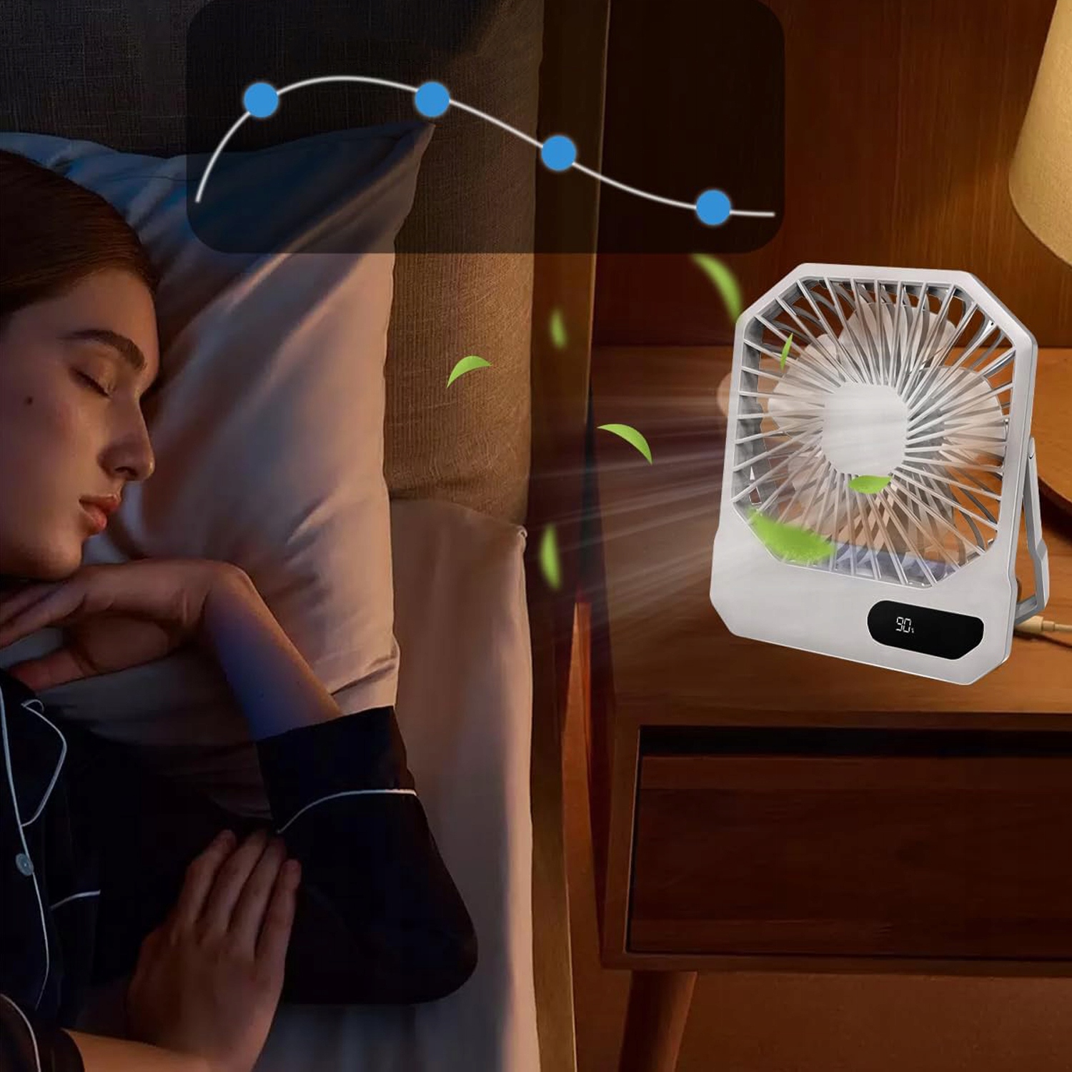 ☑️【Портативный и перезаряжаемый】: Наш небольшой настольный вентилятор представляет собой компактный и легкий настольный USB-вентилятор, что делает его идеальным для использования как дома, так и в офисе. Благодаря встроенному аккумулятору емкостью 3000 мАч он может работать до 10 часов. И он поддерживает использование во время зарядки, обеспечивая постоянный поток прохладного воздуха, где бы вы ни находились.