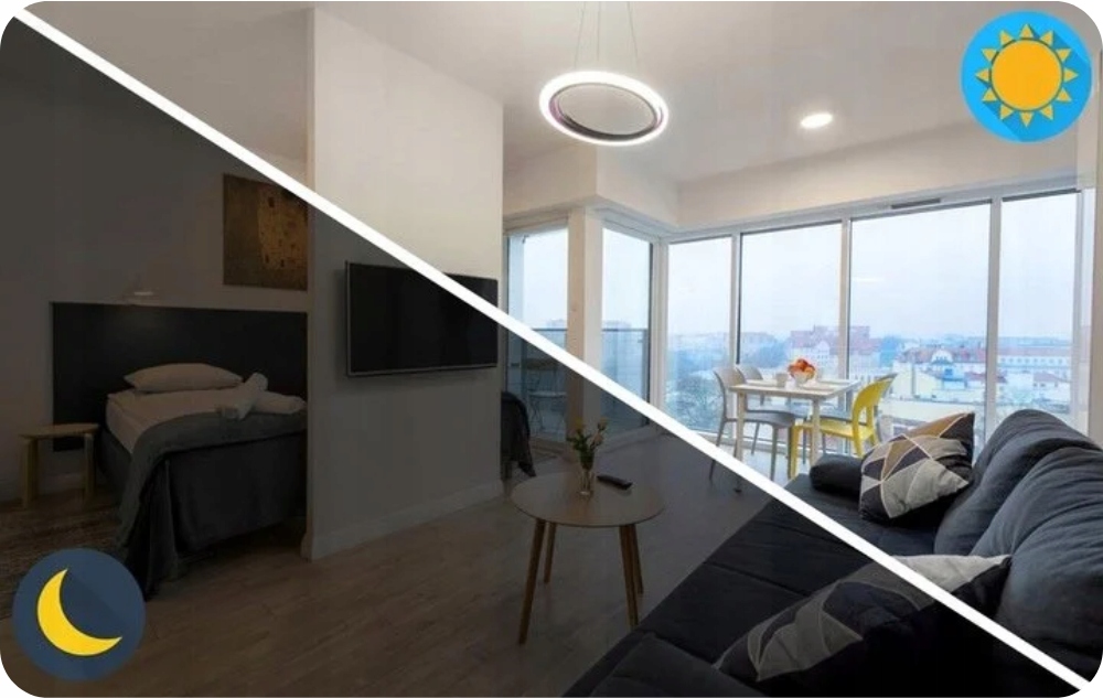 - Автоматическое переключение: Датчик освещенности автоматически активирует ночной режим в условиях низкой освещенности.