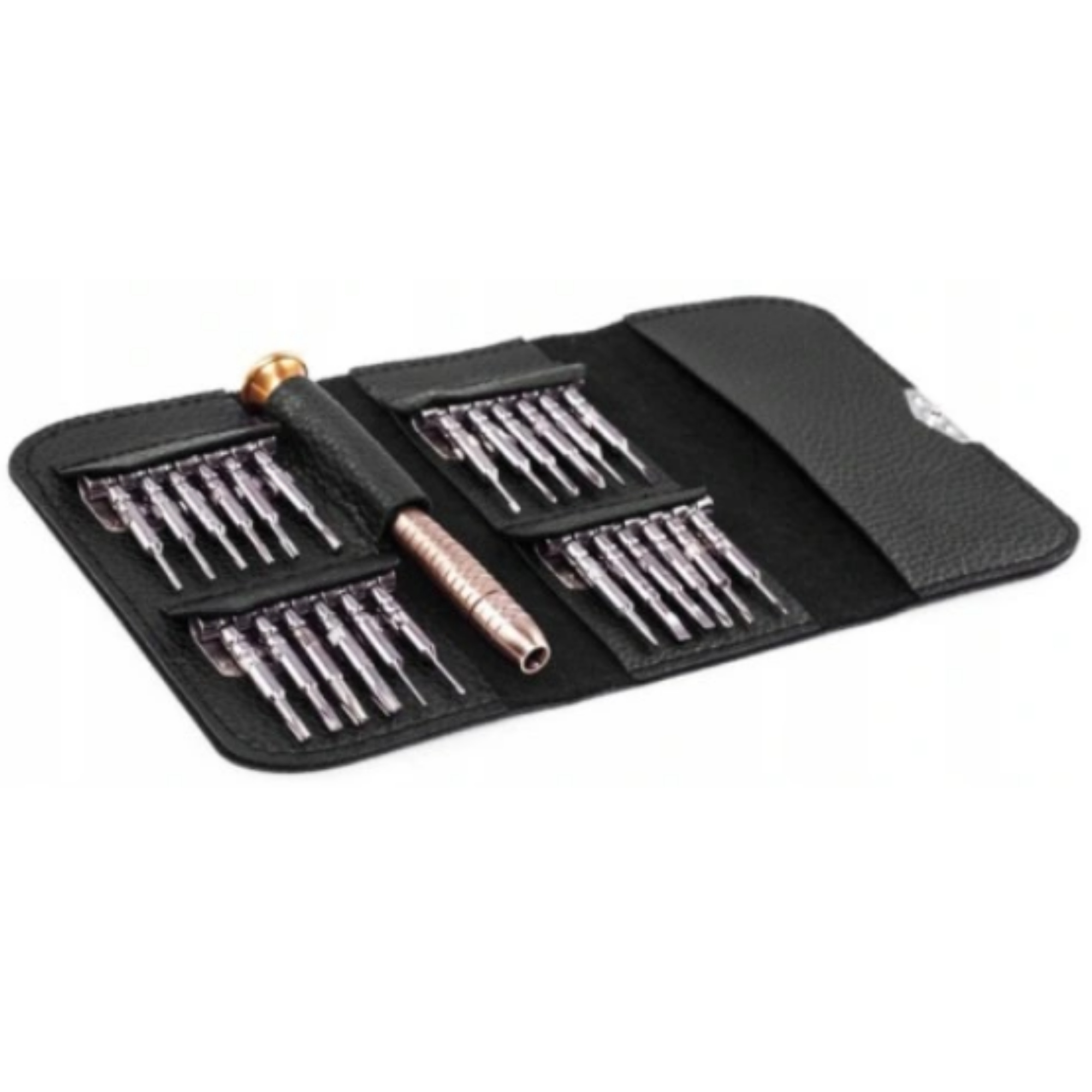 Он состоит из прецизионной отвертки с 24 различными сменными наконечниками, позволяющими работать с различными типами винтов. Благодаря компактному размеру и разнообразию насадок этот набор идеально подходит для точной работы с небольшими электронными компонентами, часами и очками. Это практичный инструмент для любителей DIY, любителей электроники и всех, кто занимается мелким ремонтом. Этот набор также пригодится в домашнем хозяйстве, где он служит подручным инструментом для быстрого ремонта.