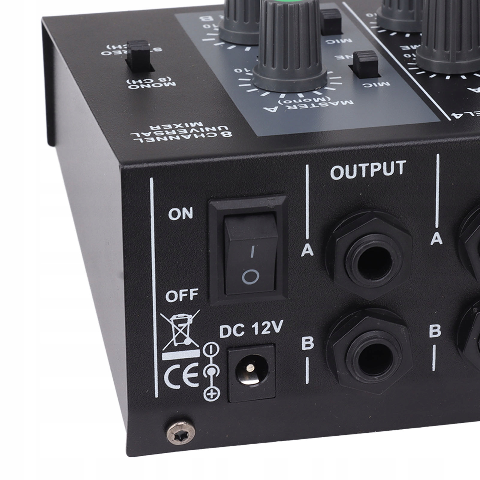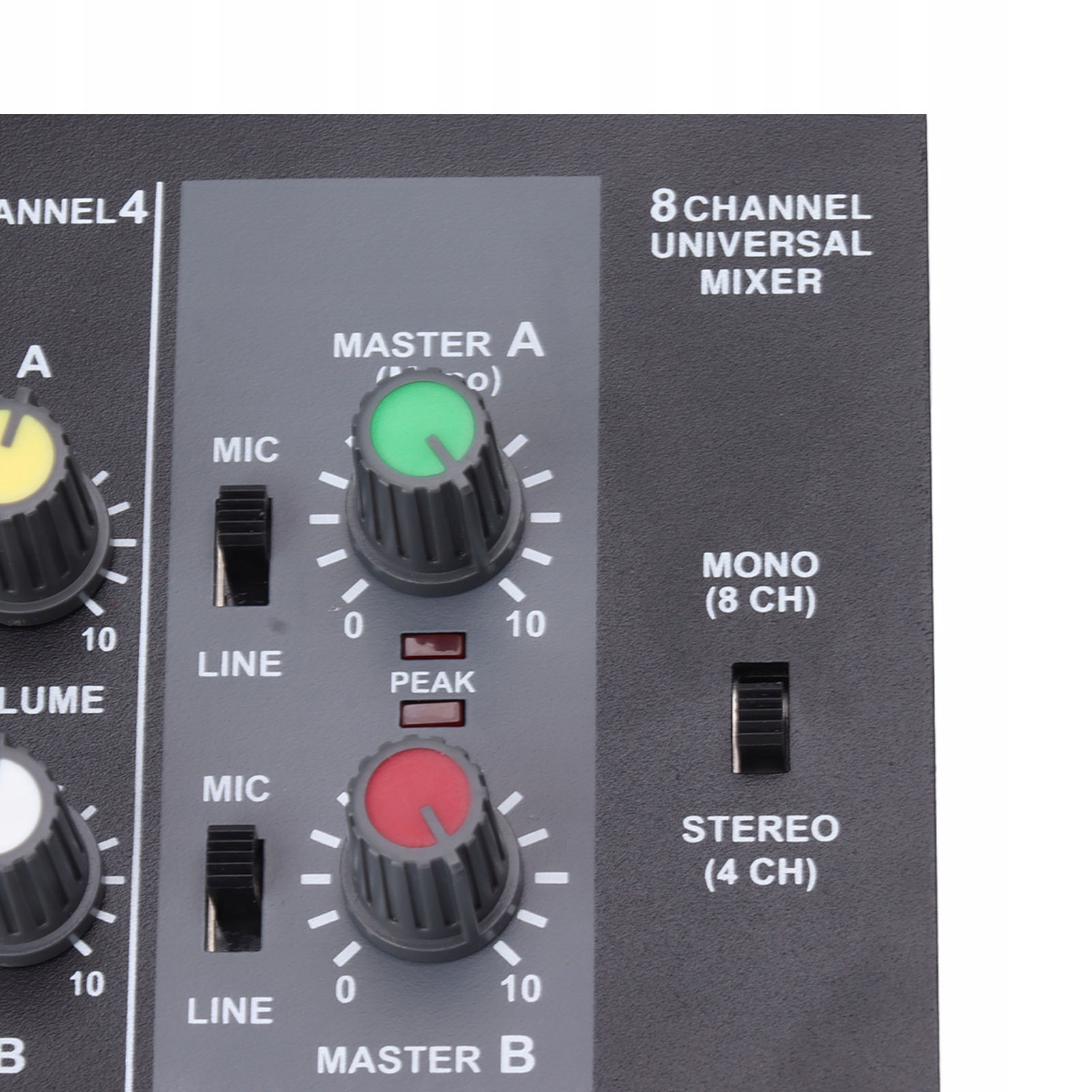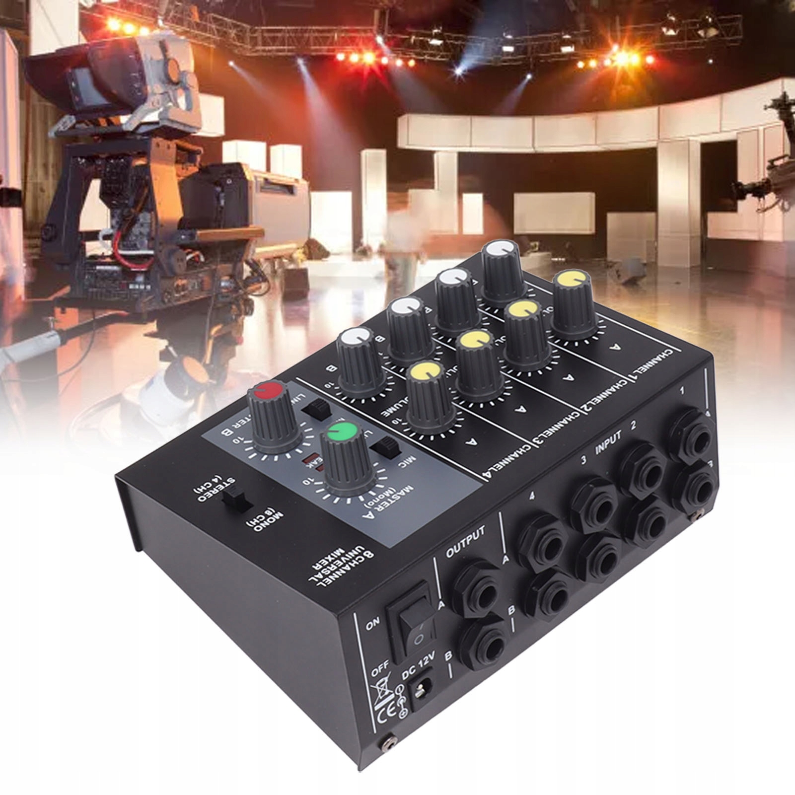 Мини-звуковой микшер, 8 входов, 2 выхода, 4 канала стерео и 8 каналов моно, линейный микрофонный микшер для студийной сцены, небольших клубов, баров, от 100 до 240 В, вилка стандарта США
