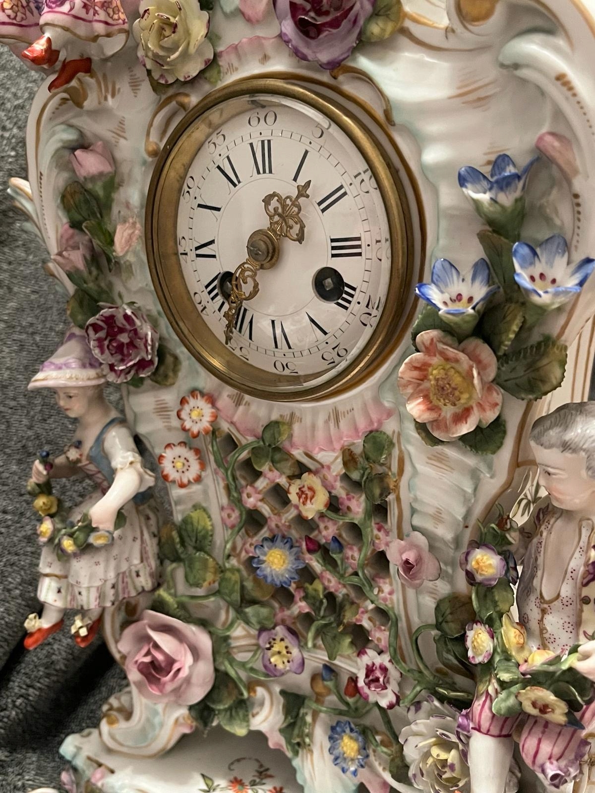 MIŚNIA BAROKOWY ZEGAR PORCELANOWY