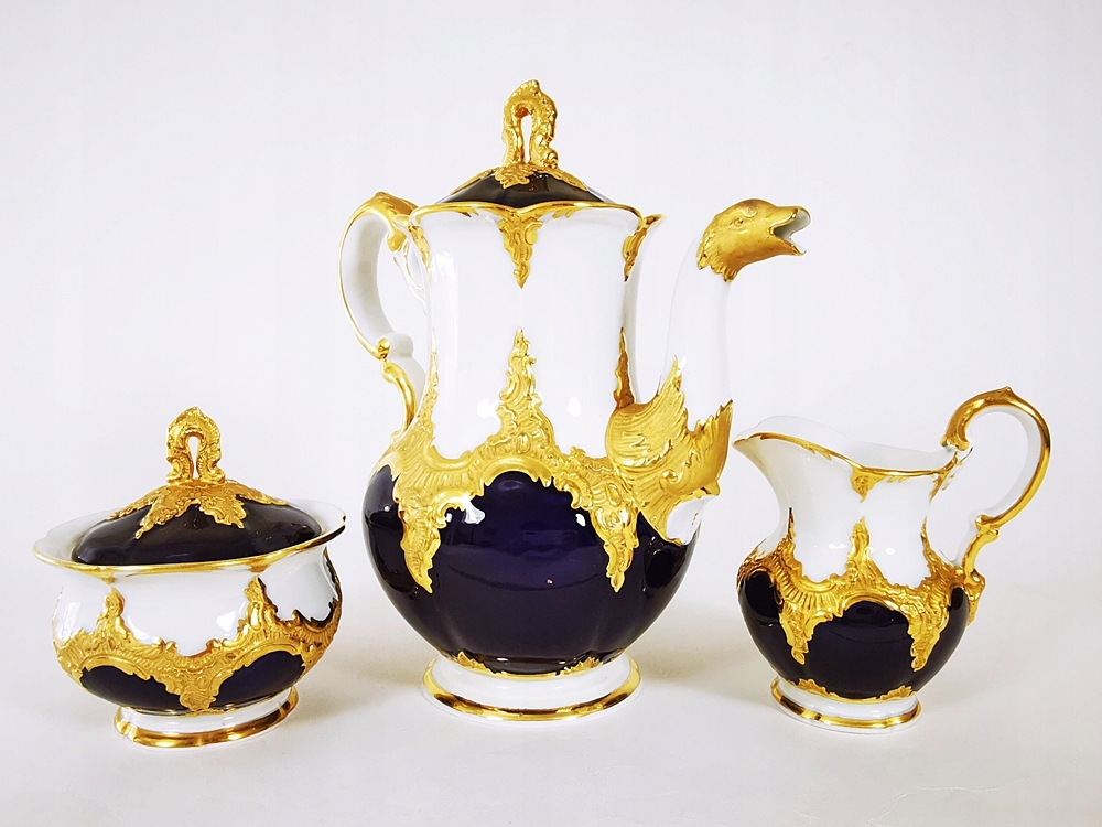 для кофе/мокко - кувшин, сахарница и молочник с т.н. Форма B от Королевской Мейсенской фарфоровой мануфактуры.