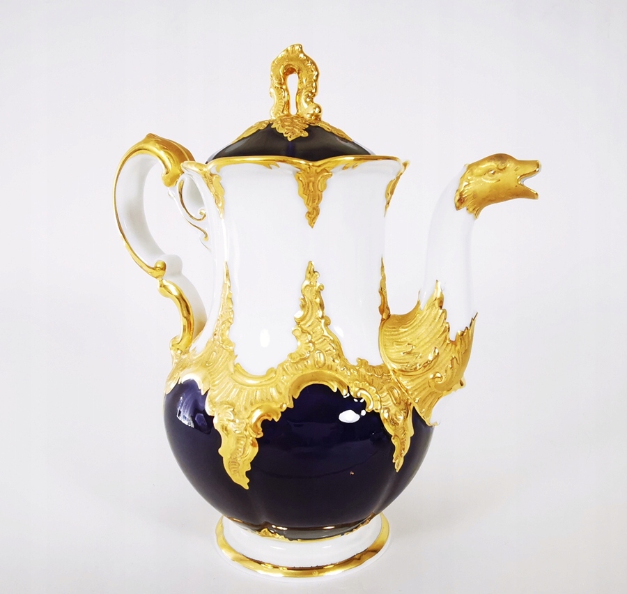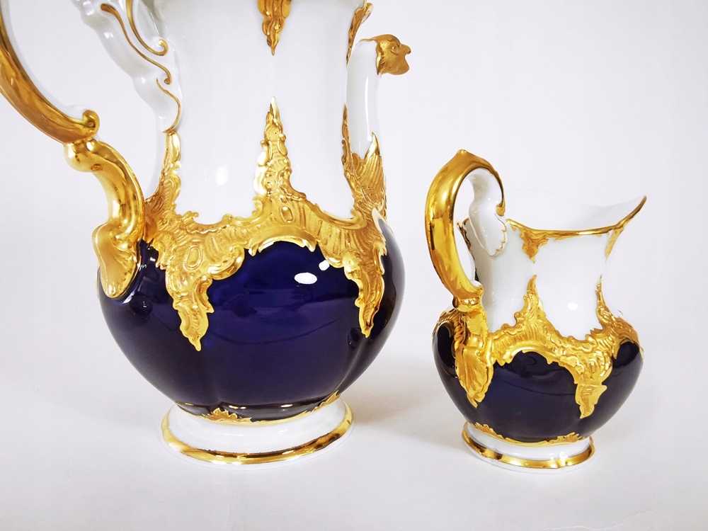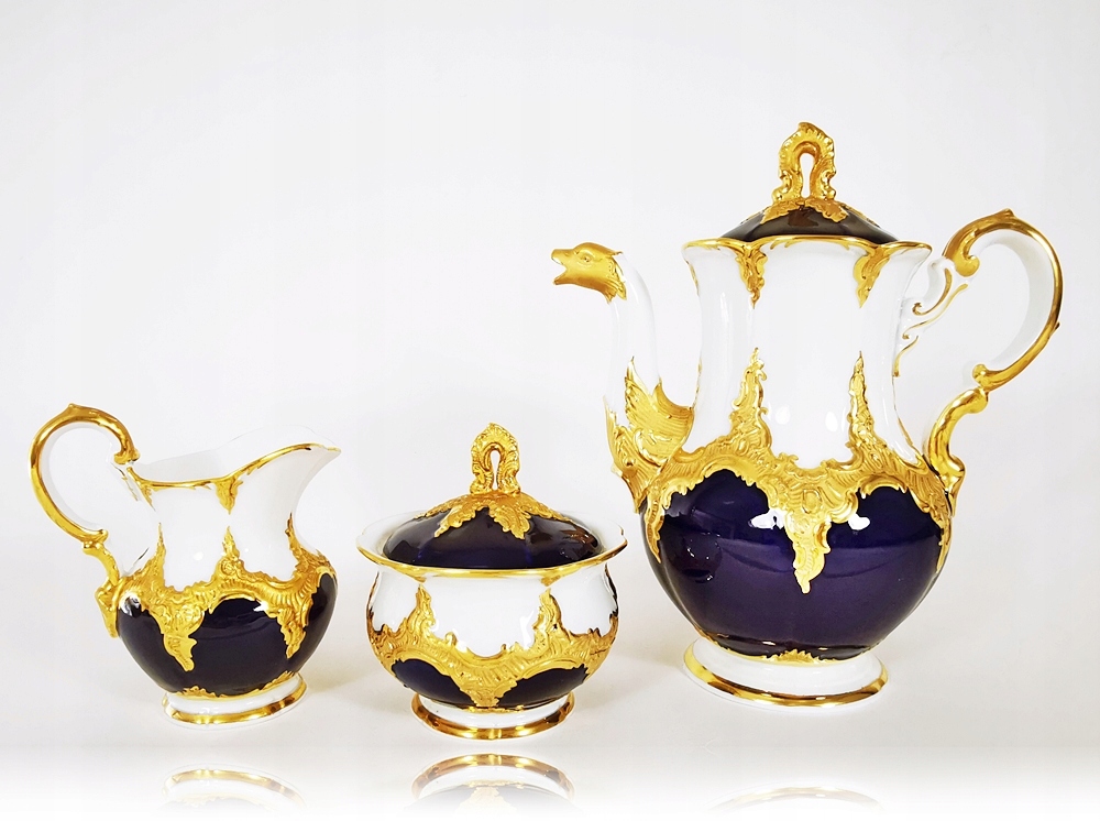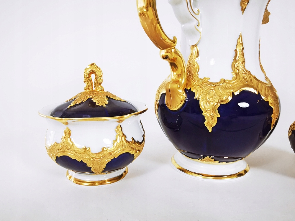 MIŚNIA MEISSEN B-Form - кобальт, золото, глечик, цукорниця та молочник