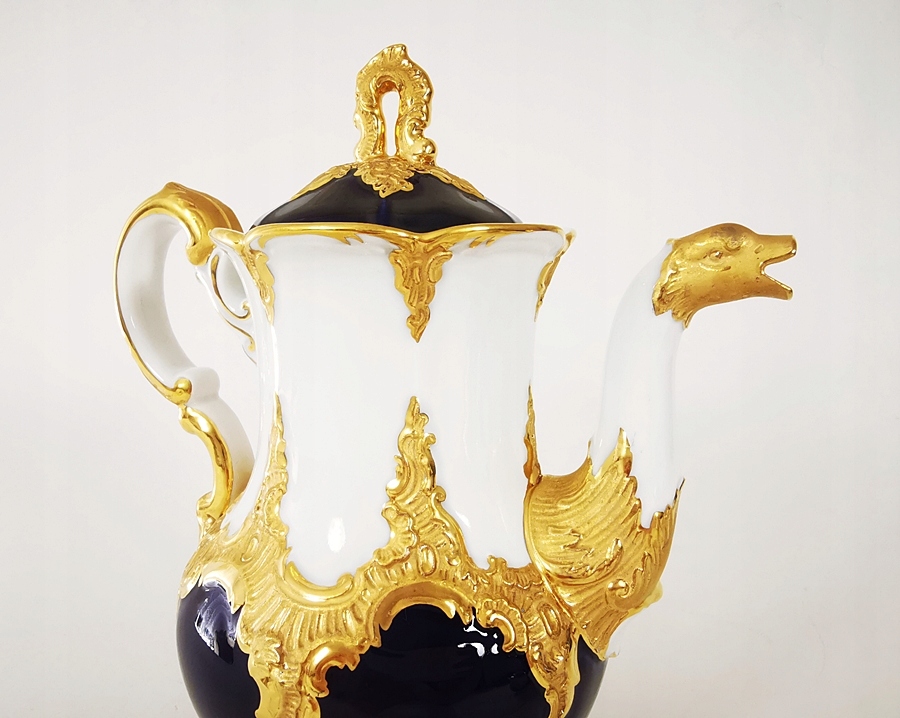 Высококачественный фарфор, частично кобальтово-синий, богато позолоченный.