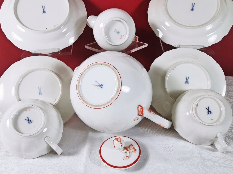 MIŚNIA MEISSEN Набір для двох, чай/кава, чашки та глечик, приблизно 1890 р.