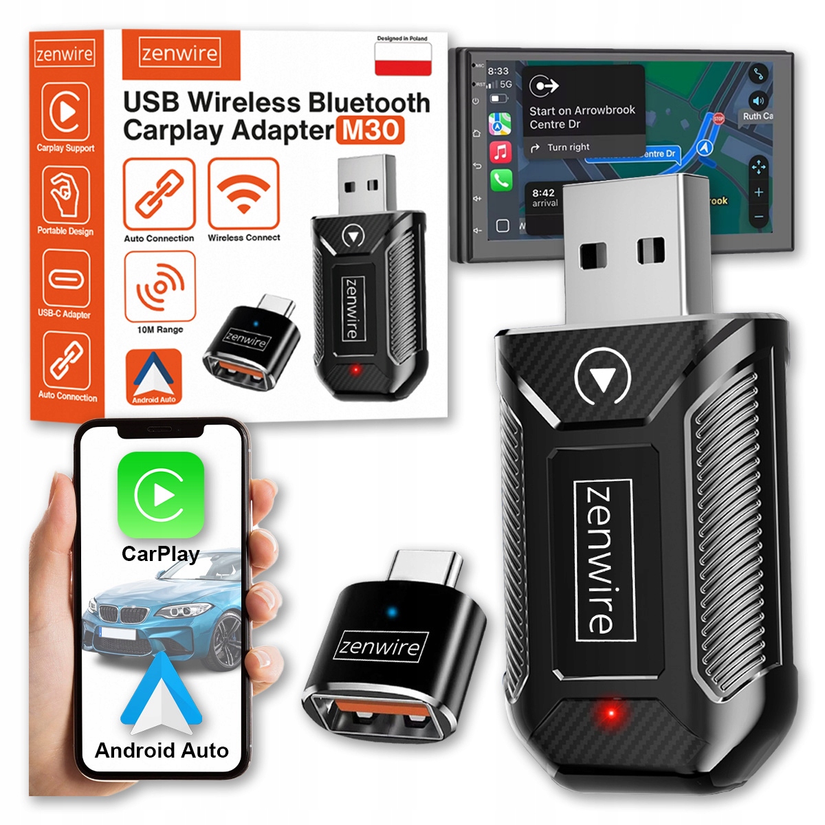 - Адаптер CarPlay/Android Auto USB Zenwire® M30