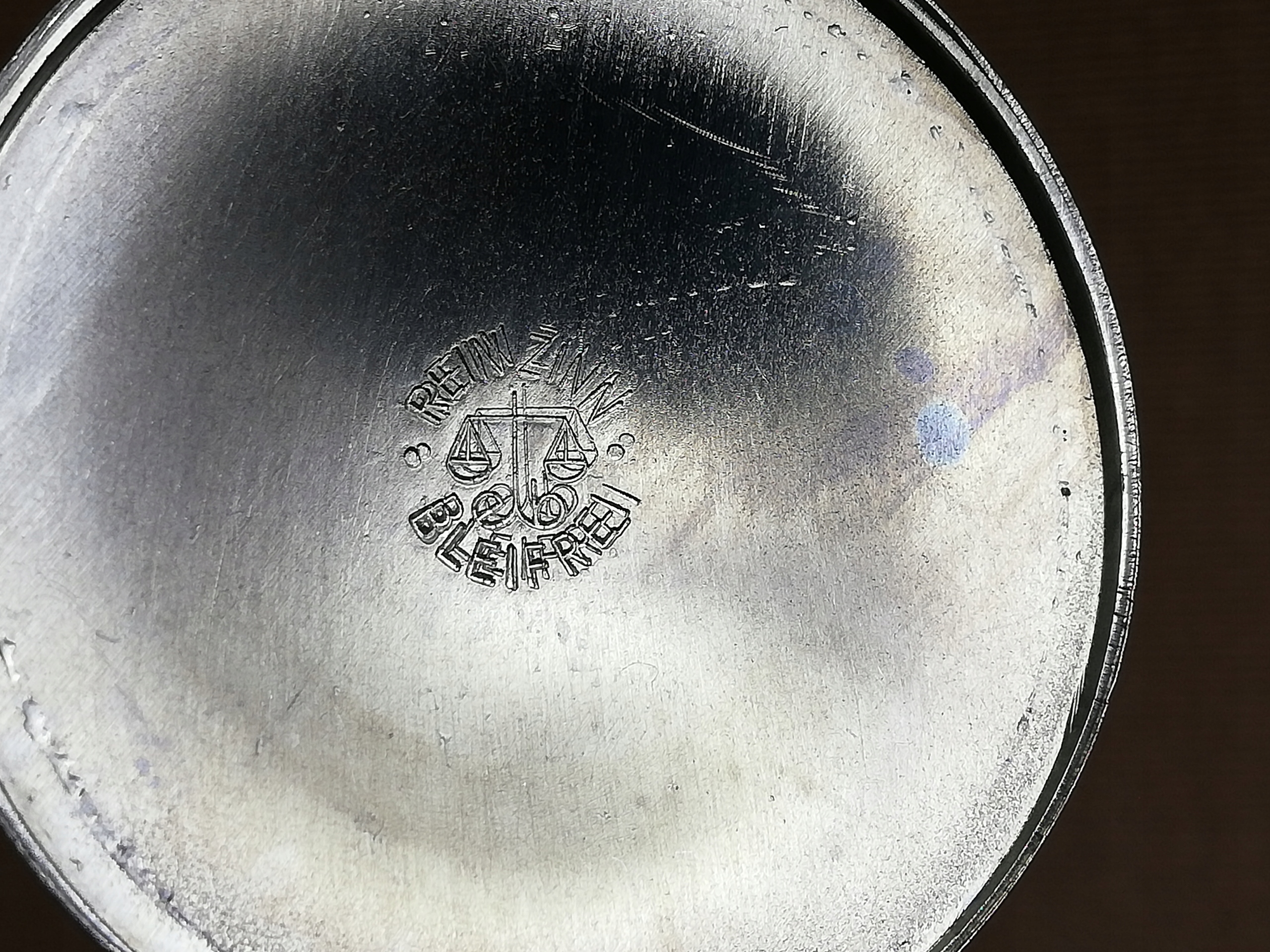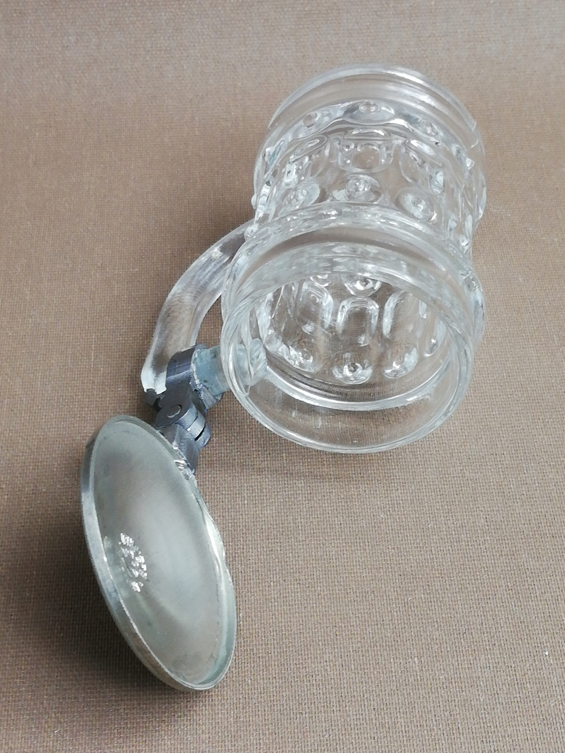 Кружка подписана Rein Zinn Germany, изготовлена из стекла и закрыта жестяной крышкой