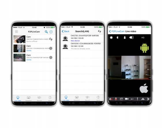 - Камера автоматически начинает запись при обнаружении движения, режим запускается с помощью "Proicam" или приложение "P2PliveCAM"