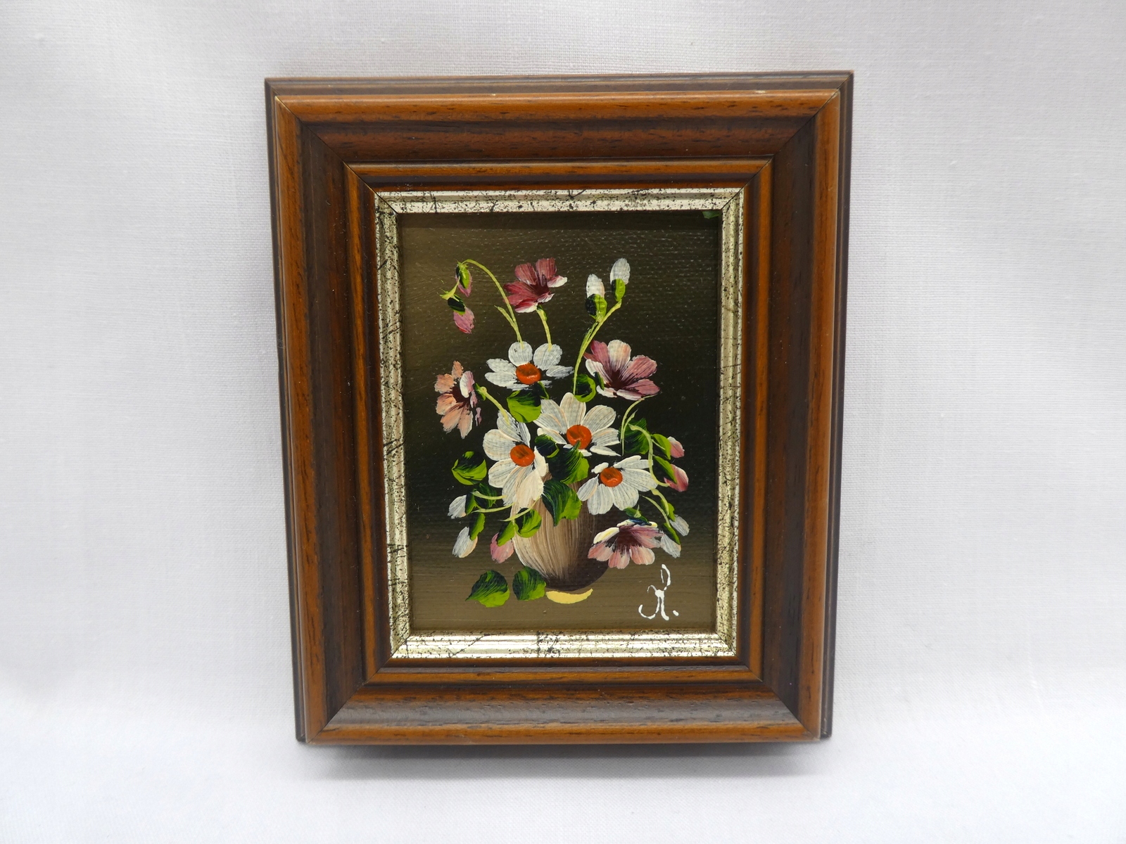 МИНИАТЮРНАЯ КАРТИНА МАСЛОМ ЦВЕТЫ В РАМКЕ 1-4128