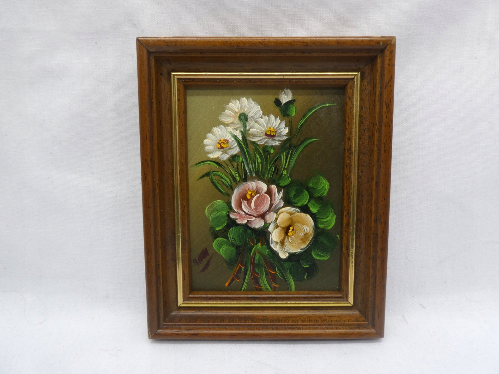 МИНИАТЮРНАЯ КАРТИНА МАСЛОМ ЦВЕТЫ В РАМКЕ 1-4343