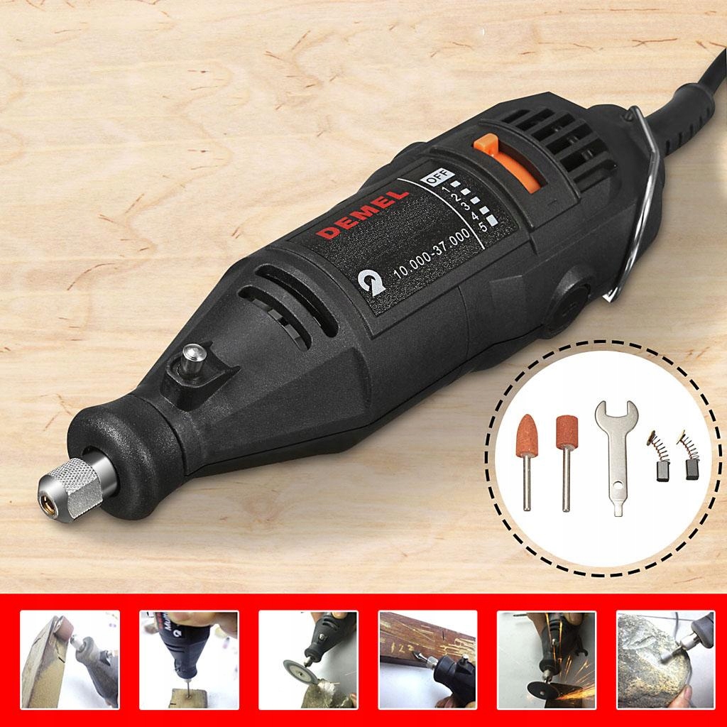 Регулируемая скорость скорости от 8000 об / мин до 300 000 об / мин обеспечивает гибкую настройку и настройку скорости в зависимости от типа выполненных работ и типа используемых материалов; Замок шпинделя обеспечивает быстрое и простое замену битов.