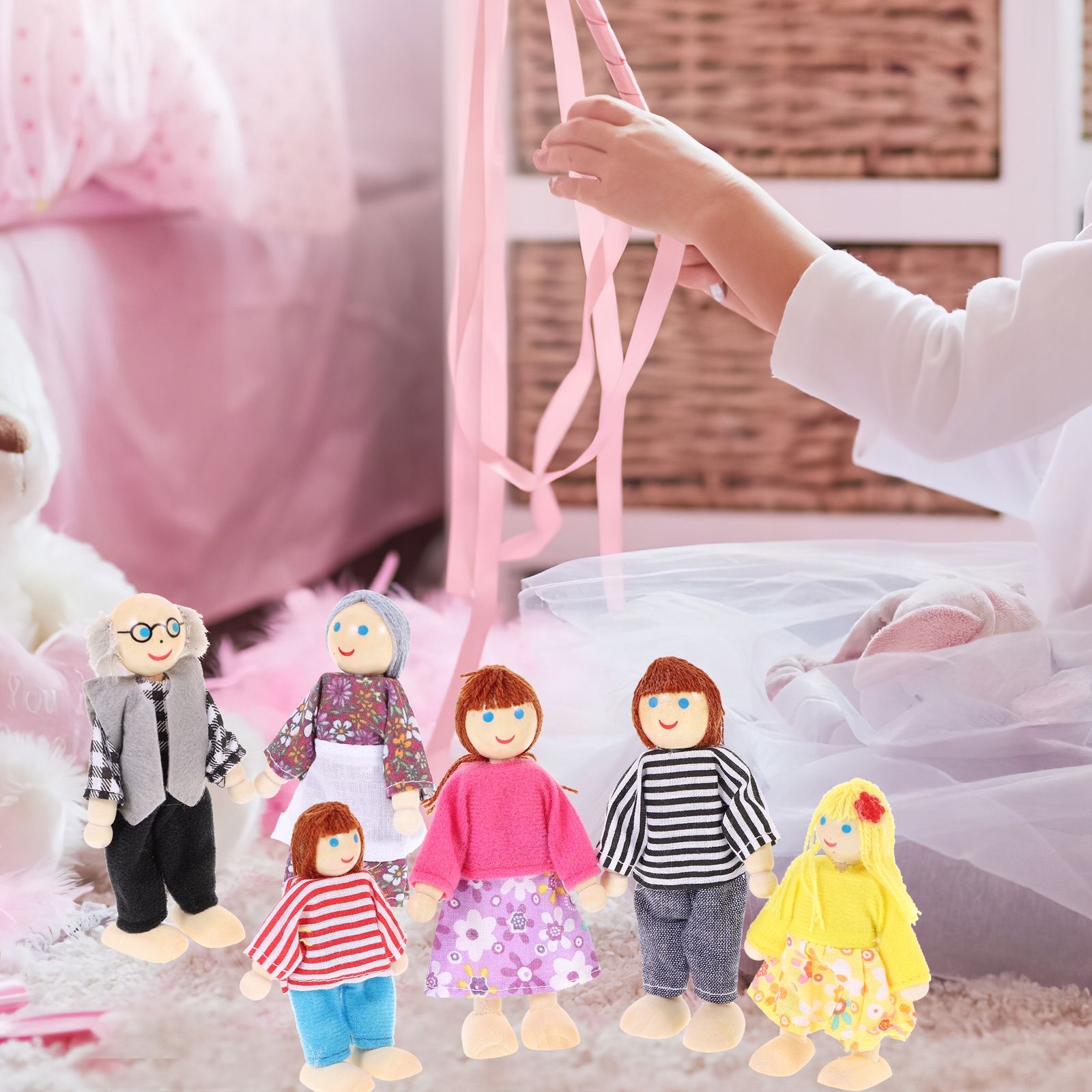 ✅ ✅ Объект - это набор из 6 очаровательных кукол для детей. Он сделан из тщательно отполированной древесины с безопасной камерой и гладкой поверхностью, подходящей для детей. Куклы гибкие. Это отличный подарок для ребенка дома. Кроме того, семейные куклы также действуют как декор дома.