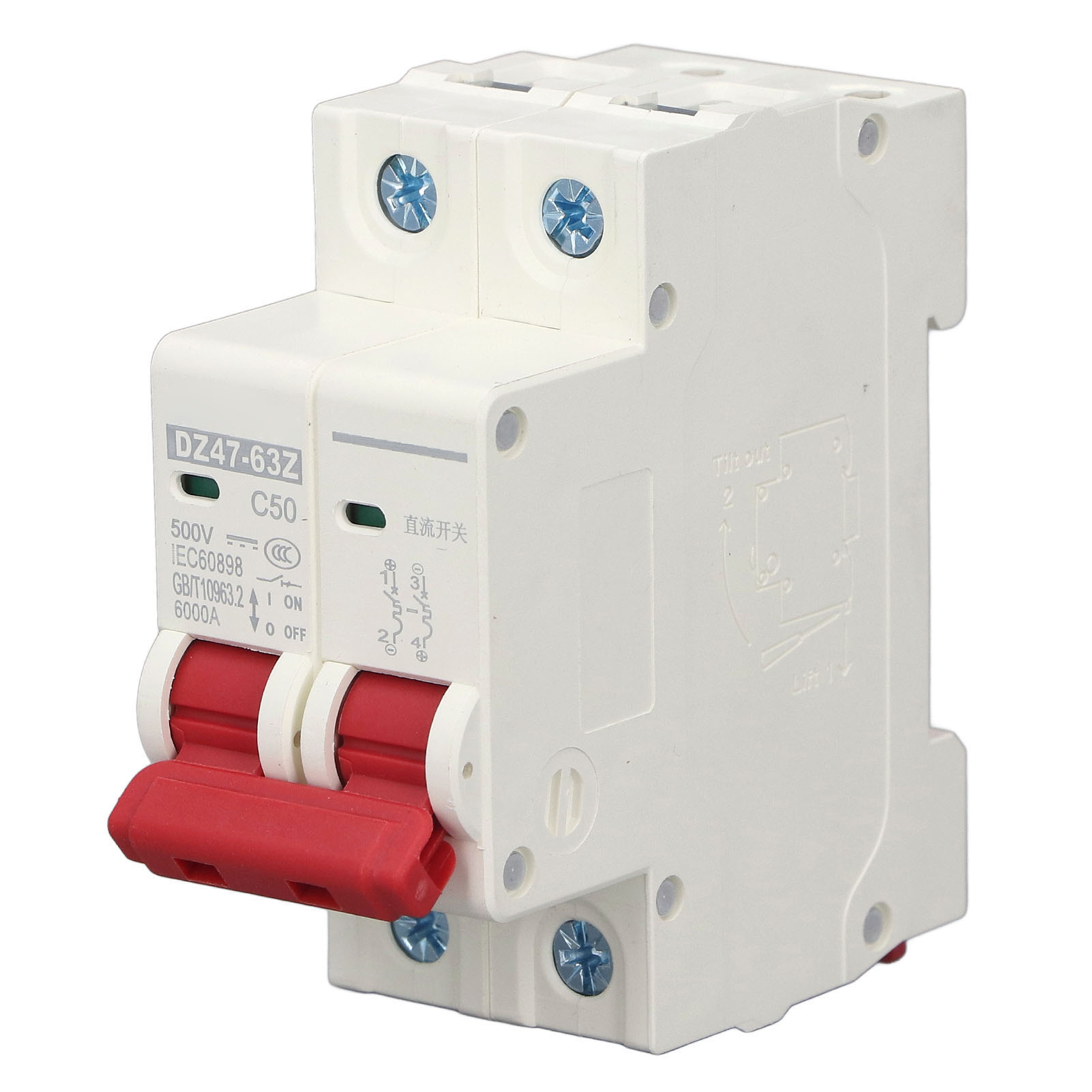 Миниатюрный автоматический выключатель постоянного тока Mini 50A DZ47 63Z C50 2P для солнечной фотоэлектрической системы постоянного тока 500 В