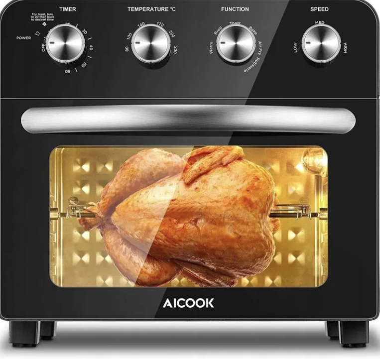Аэрофритюрница Aicook 1700W оснащена технологией циркуляции горячего воздуха на 360°, которая позволяет выполнять все ваши кухонные задачи, такие как запекание, запекание, сушка и разогрев.