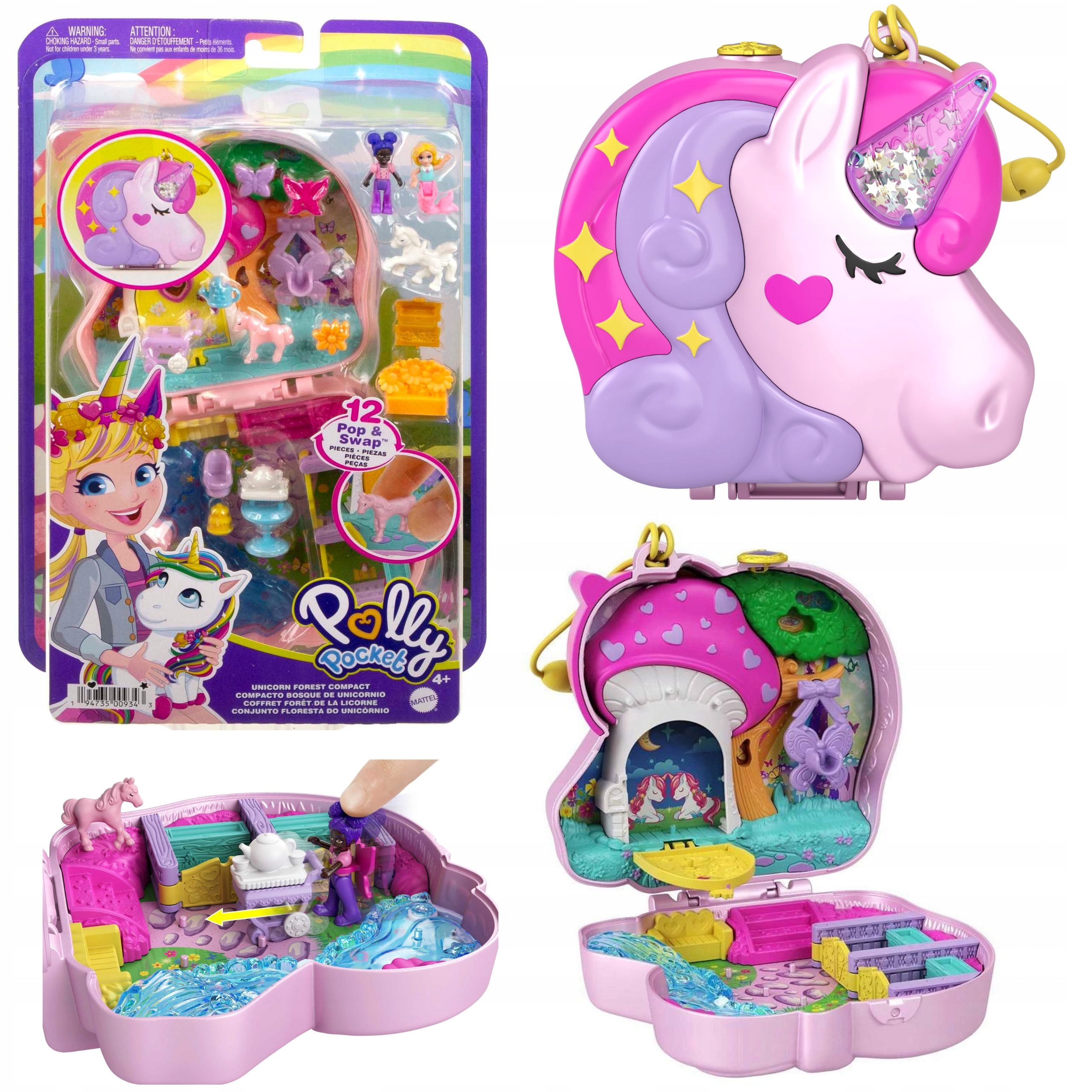 Приготовьтесь к волшебным сюрпризам с Polly Pocket™! Этот Unicorn Forest Compact идеально подходит для игр дома или в дороге. Он выполнен в тематике лесного чая с мотивом единорога снаружи и прозрачным рожком, наполненным блестящими блестками.