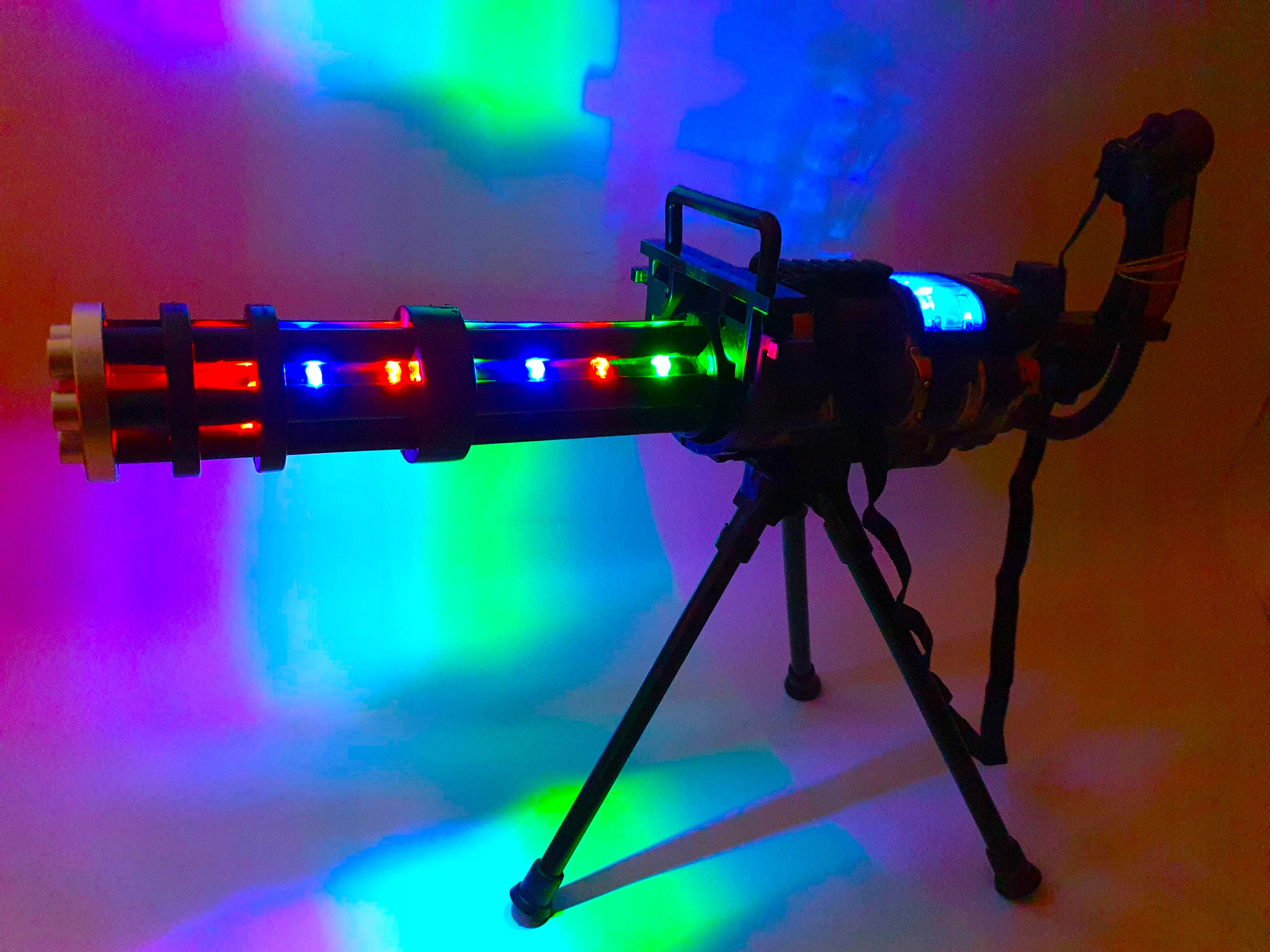 МИНИГУНТ НА АККУМУЛЯТОРЕ СО ЗВУКОМ СТРЕЛЬБЫ, СВЕТЯЩИМИ СВЕТОДИОДАМИ И ВИБРАЦИЯМИ