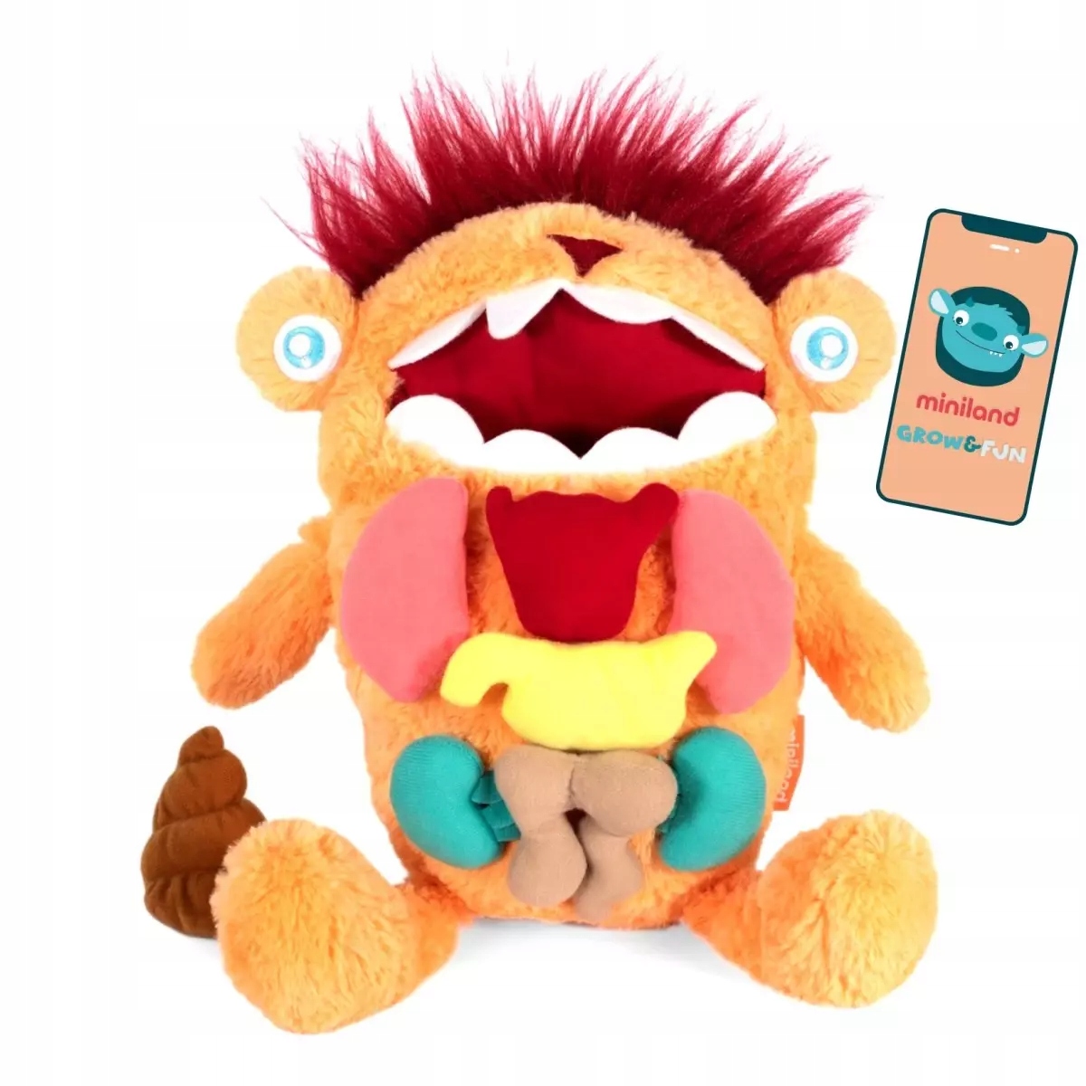 5 мягких органовУ этого милого большого существа-талисмана есть 5 органов, сделанных из мягкого, гладкого материала ярких, дружелюбных цветов: сердце, легкие, почки, желудок, кишечник и даже какашки!