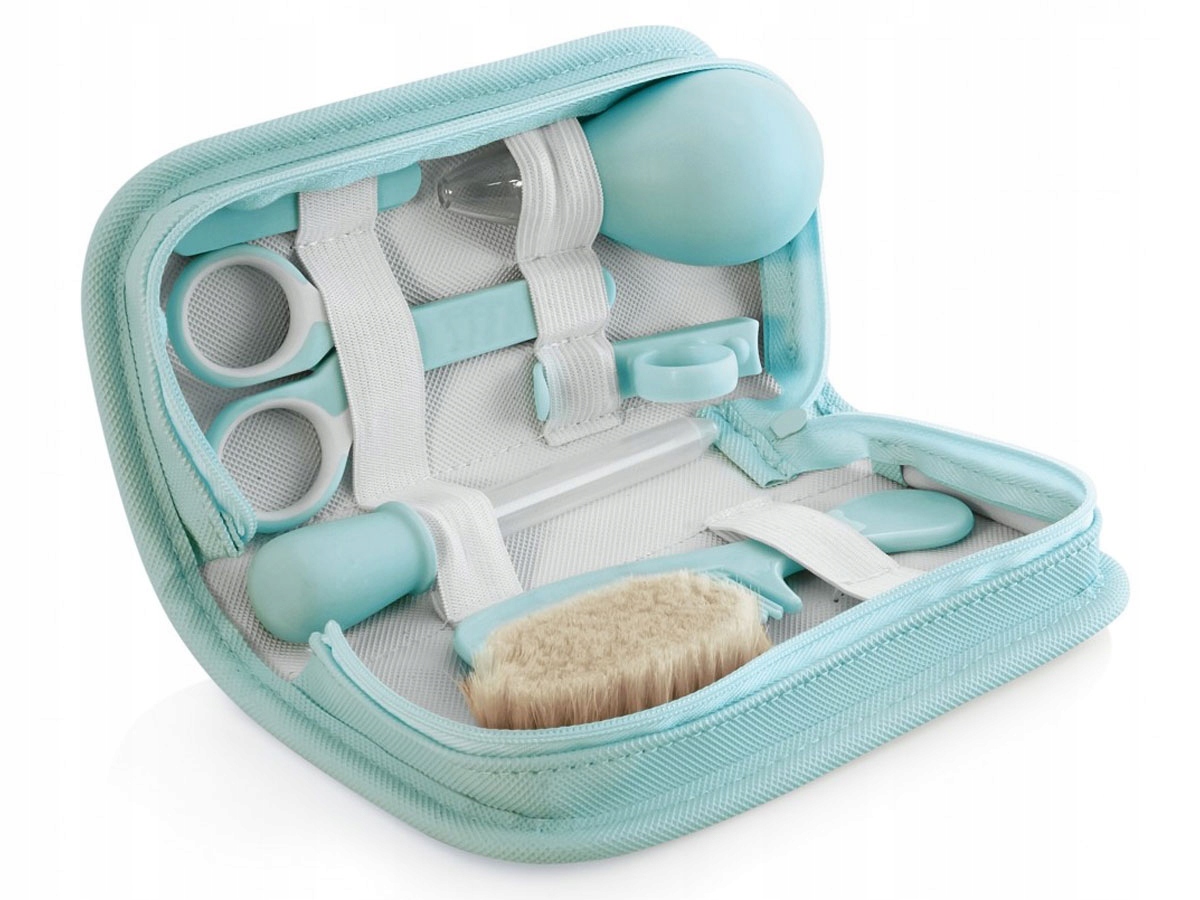 Данный набор состоит из элементов, необходимых для ежедневного ухода за ребенком: пипетка, назальный аспиратор, расческа, великолепная кисточка с натуральной щетиной, практичные ножницы, кусачки для ногтей и четыре пилочки.