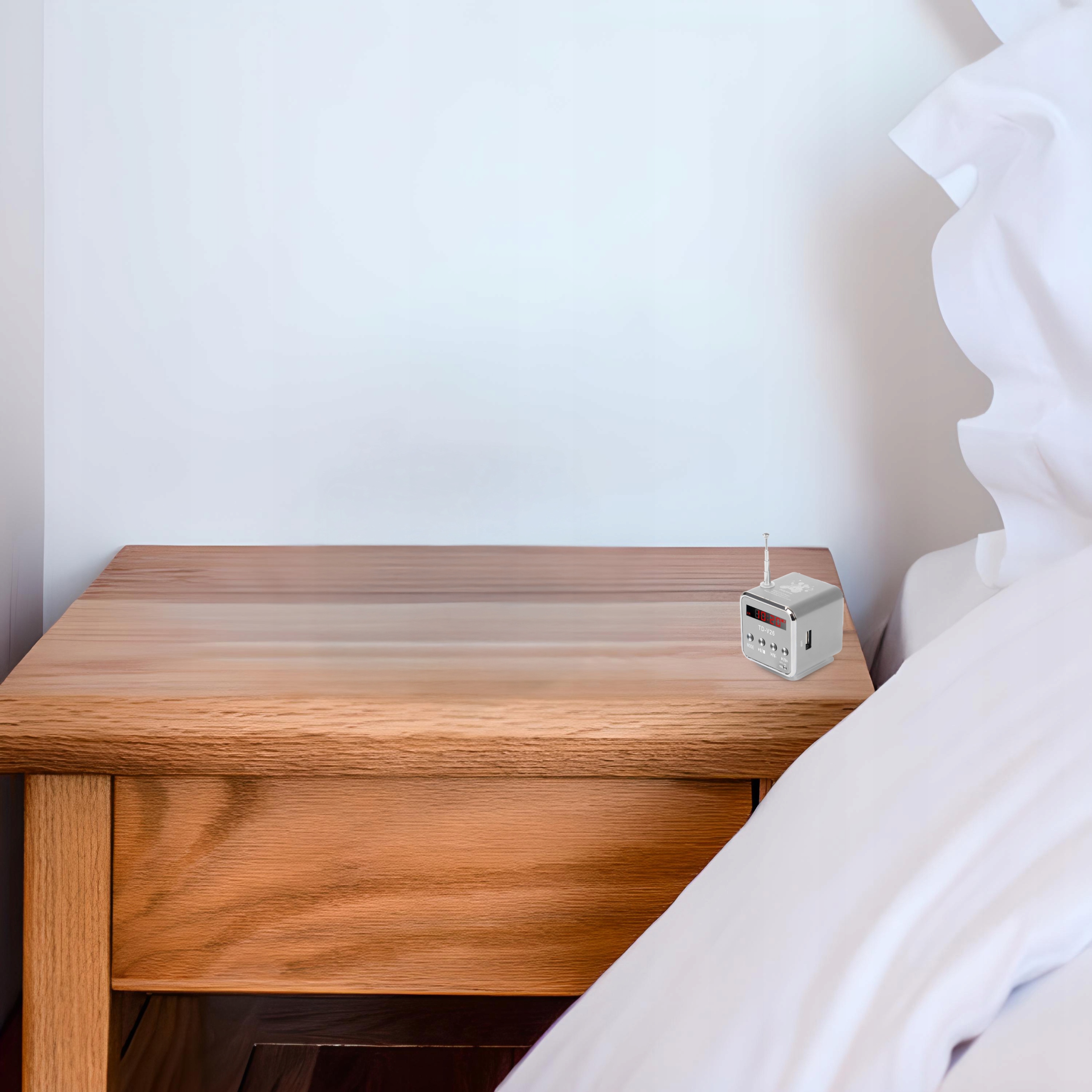 Мини-радио — это, по сути, множество устройств в одном! Помимо тюнера, устройство оснащено mp3-плеером, Bluetooth, портами miniUSB и USB, а также слотом для карт памяти microSD (TF). Оно также имеет вход для наушников мини-джек 3,5 мм, его можно использовать в качестве динамика для других устройств, например смартфон. В свою очередь, имеется выход для наушников mini jack 3,5 мм и разъем AUX IN для внешних динамиков.