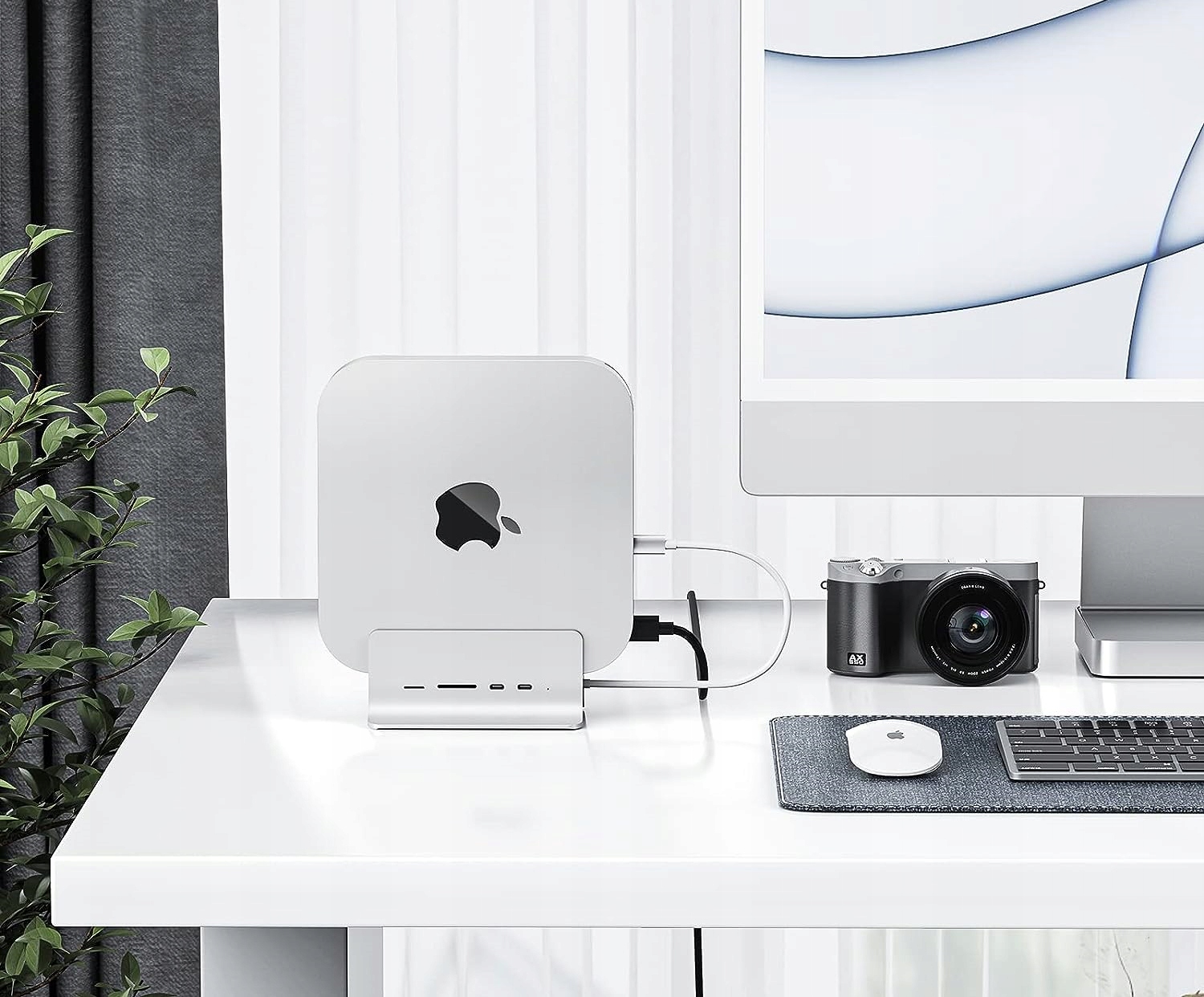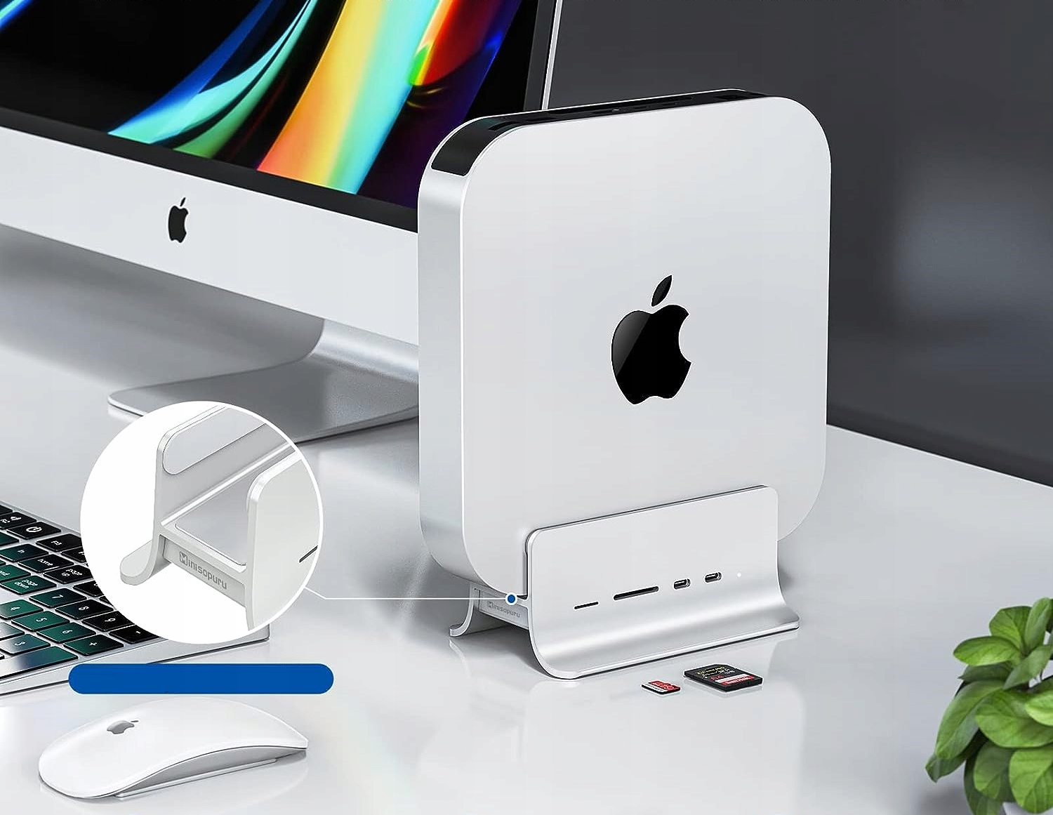 Док-станция Minisopuru USB C с естественным удлинением M1 Mac mini — элегантная матовая отделка и корпус из серебристого алюминия. Универсальная подставка для Mac mini и концентратор USB C не только обеспечивают эффективное и универсальное рассеивание тепла, продлевая срок службы вашего Mac mini, но и поддерживают порядок на рабочем месте.