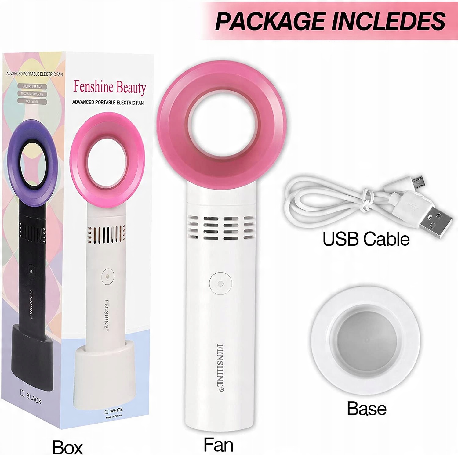 Fenshine Портативный USB-перезаряжаемый мини-вентилятор для сушки ресниц Безлопастной ручной вентилятор для наращивания ресниц, кондиционер для основных принадлежностей для наращивания ресниц (белый)