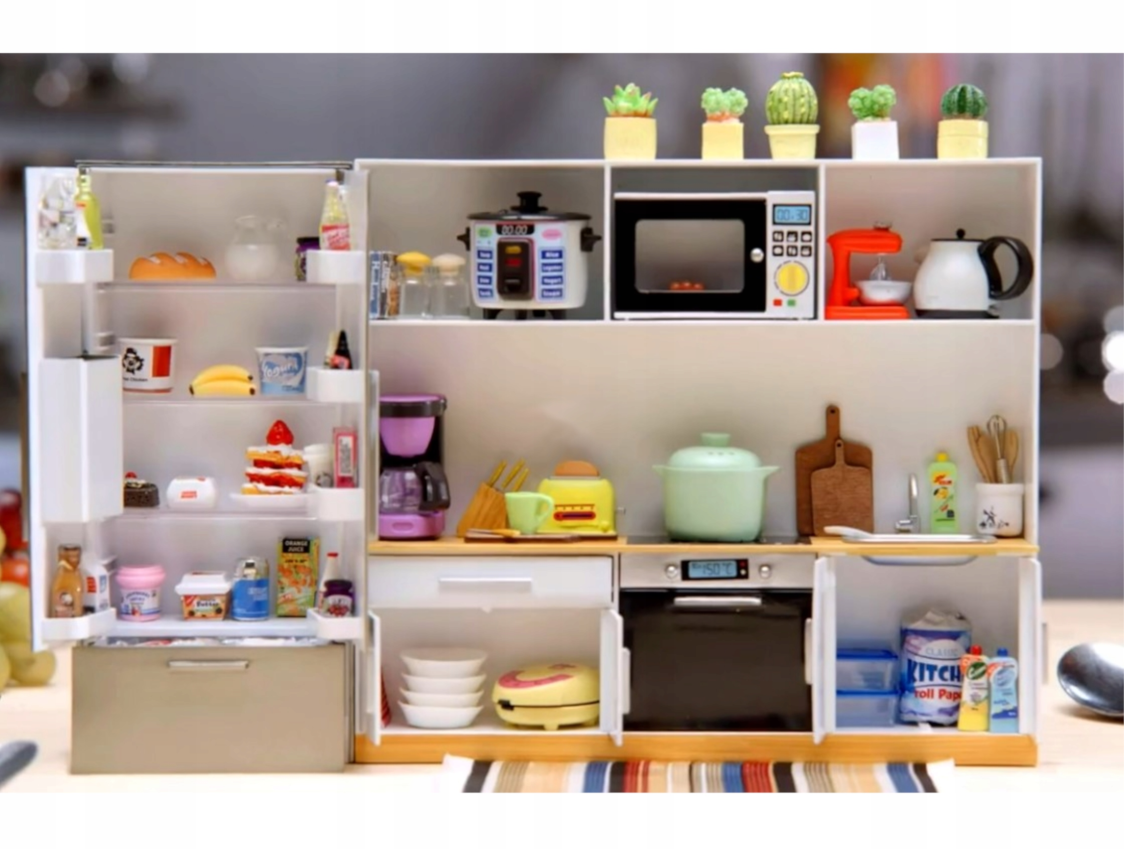 Набор содержит все необходимое для создания полностью оборудованной кухни. Миниатюрная бытовая техника: духовка, микроволновая печь, холодильник, морозильная камера и даже льдогенератор!