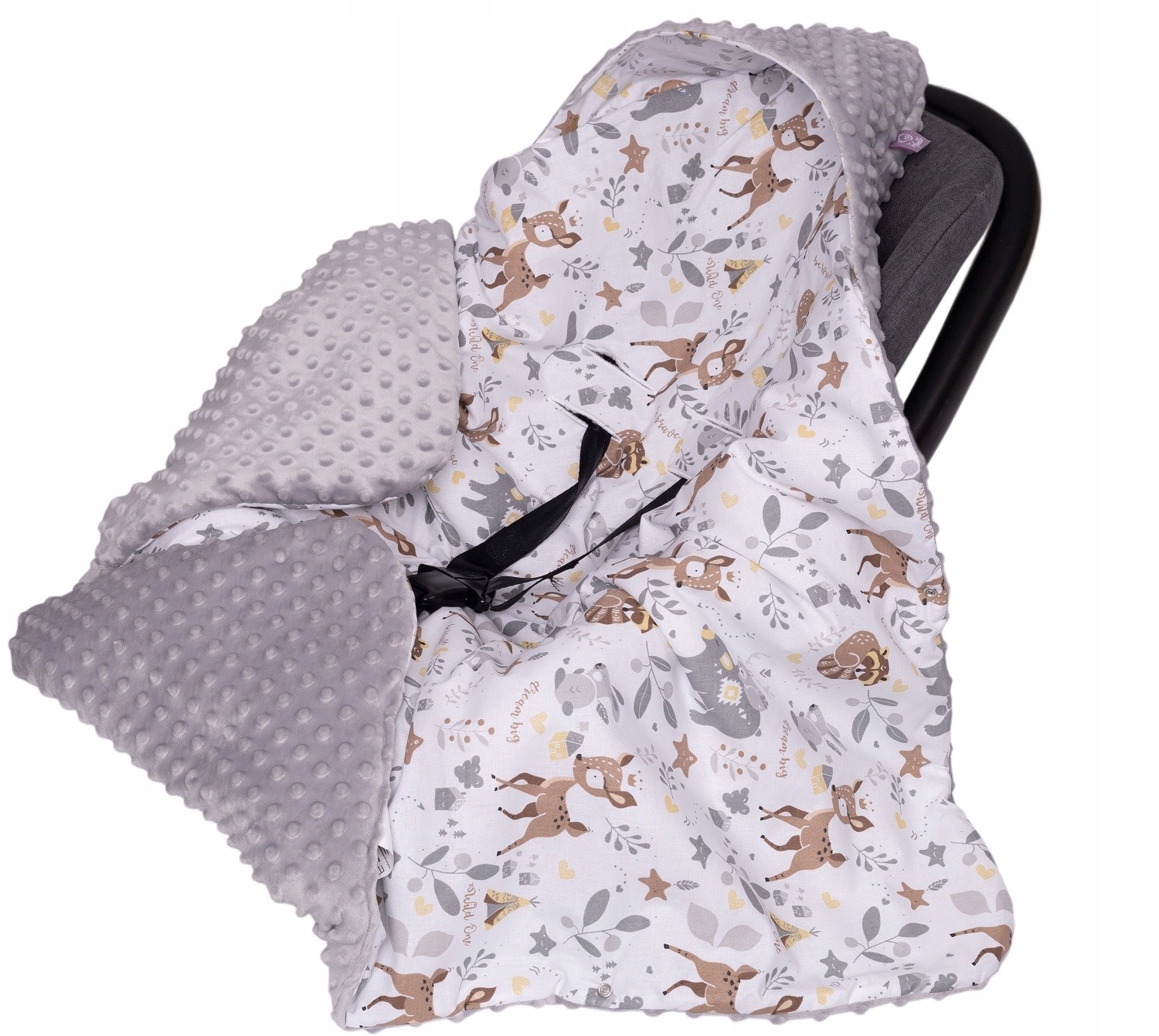 ➡️ Одеяло имеет дырочки, сделанные специальным дыроколом, что гарантирует их идеальный подгиб. Отверстия адаптированы для 3-х и 5-точечных ремней безопасности.