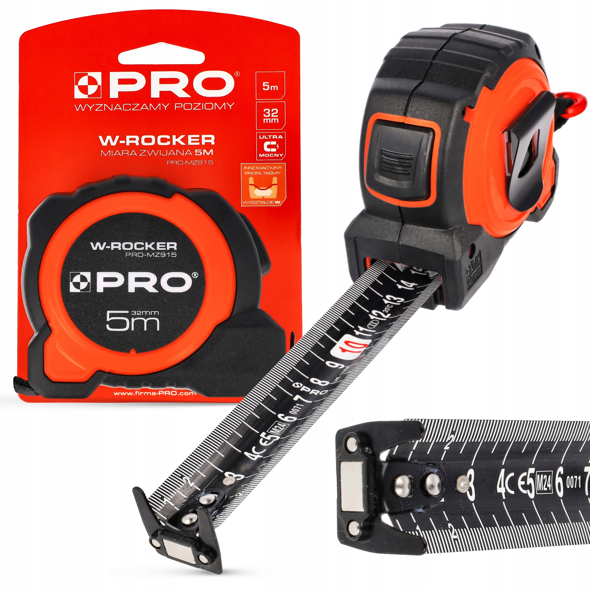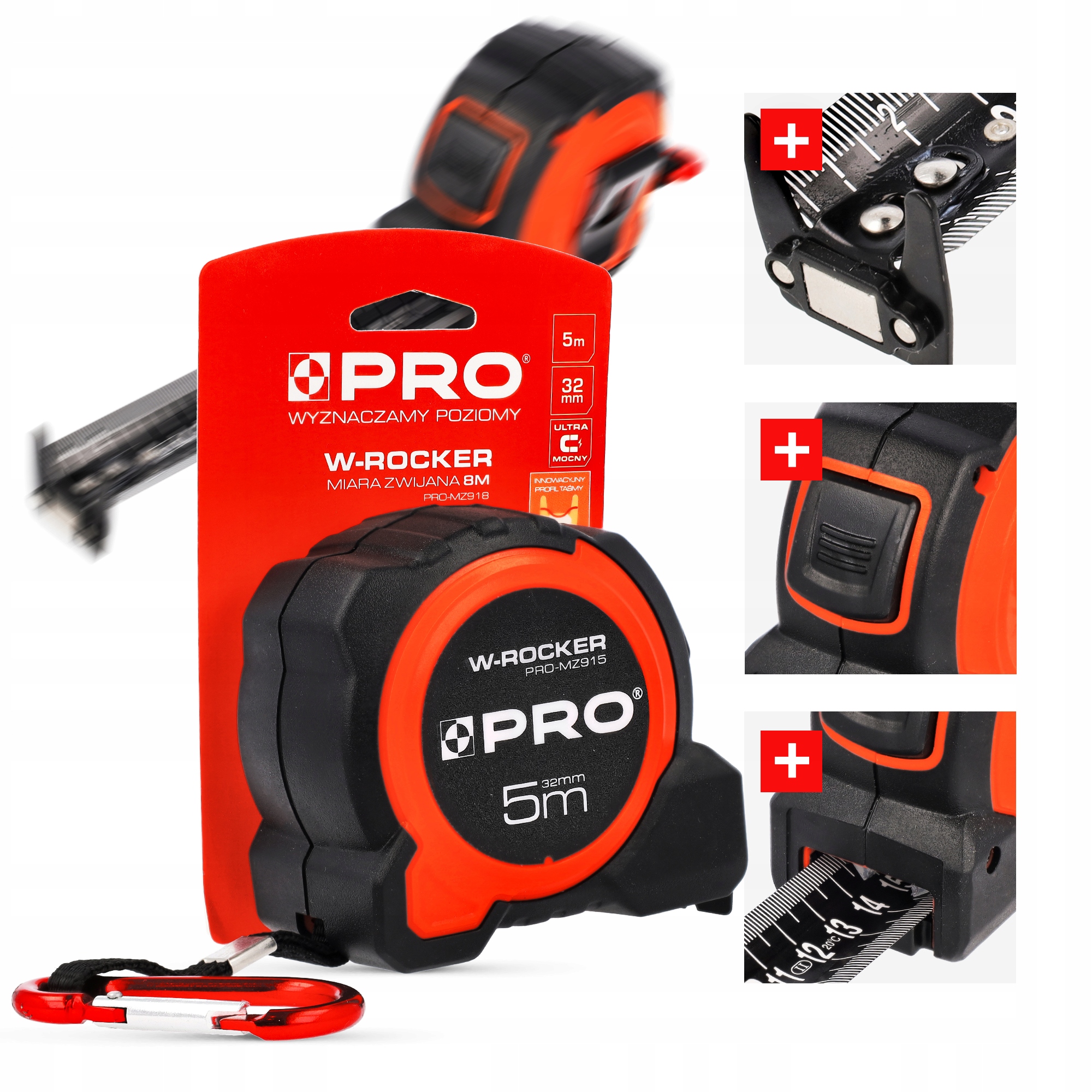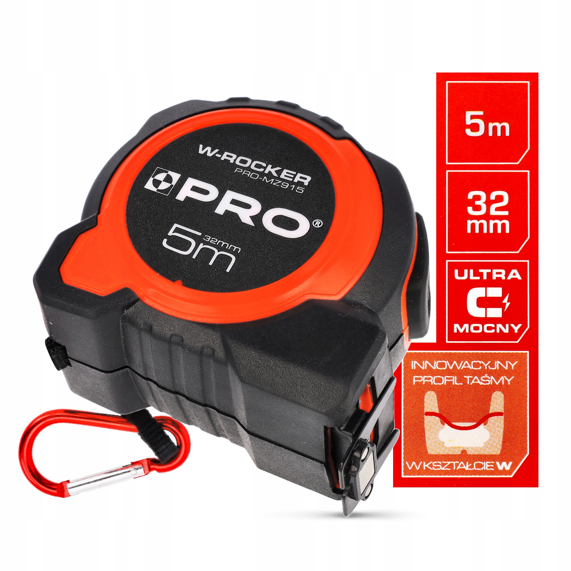 ИЗМЕРИТЕЛЬНАЯ ЛЕНТА С ПЕРЕМАТКОЙ PRO W-ROCKER 5 м 32 мм Магнитный карабин