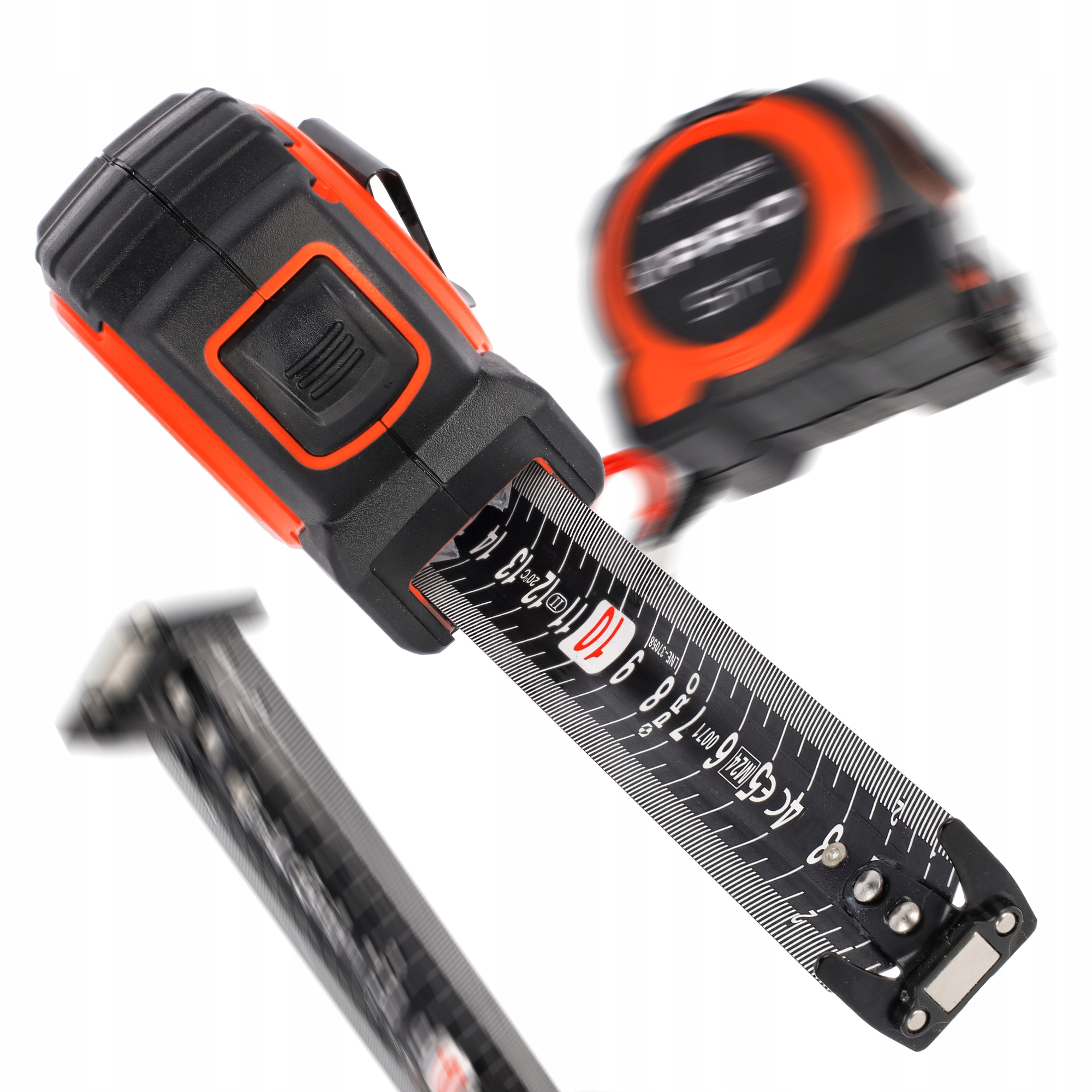 Магнит на крючке позволяет прикреплять ленту к металлическим поверхностям во время измерений.