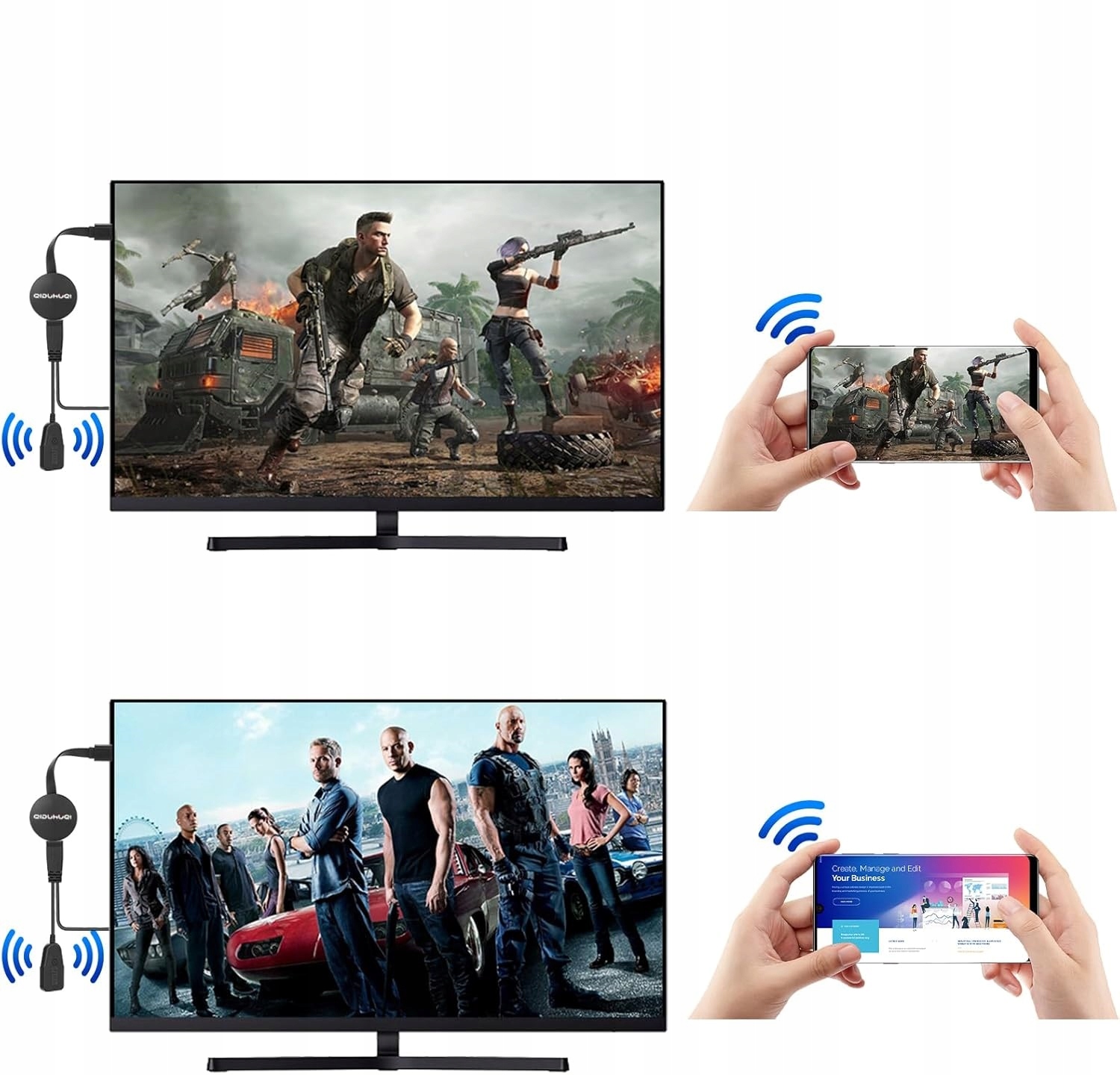 - Беспроводной адаптер HDMI гарантирует четкое и детальное изображение, обеспечивая уникальные аудиовизуальные впечатления. Это идеальный выбор для совместного просмотра фильмов, игр или организации деловых встреч, тренингов и уроков. Благодаря адаптеру Miracast вы сможете наслаждаться прекрасными моментами с семьей и друзьями, делясь высококачественными изображениями и незабываемыми впечатлениями.