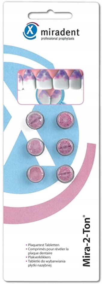 С помощью таблеток Мира-2-Тон можно эффективно проверять правильность чистки зубов и контролировать правильную гигиену полости рта.