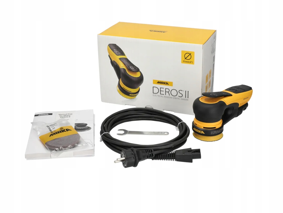- Комфорт использования - легкий дизайн, низкий уровень шума и вибрация позволяют долгосрочной работе без усталости. Mirka DeRos II 350 77 мм. 220–240 В