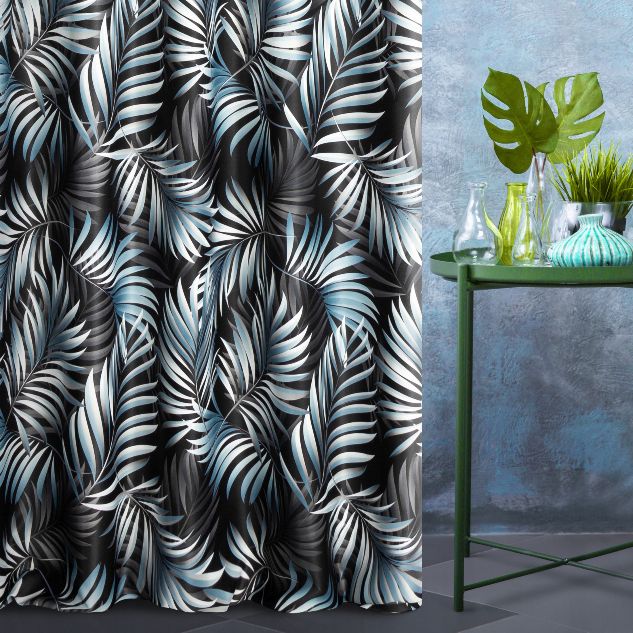 - Предмет продажи - метровая портьерная ткань с крупными, бирюзовыми и белыми листьями папоротника.