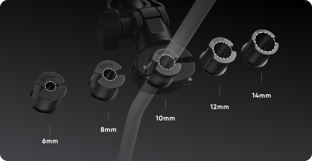 Держатель совместим с большинством зеркал заднего вида мотоциклов, скутеров и других транспортных средств. Регулируемая система крепления позволяет быстро и безопасно крепить к стержням диаметром от 8 мм до 16 мм, что обеспечивает широкий спектр применения.
