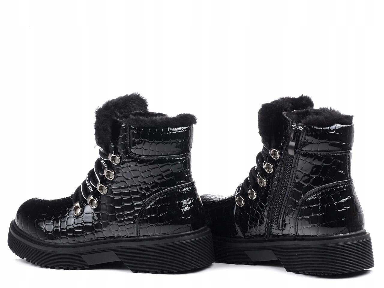 Miss E 4317 Обувь зимние обуви Изолированная черная глянцевая пешие походы