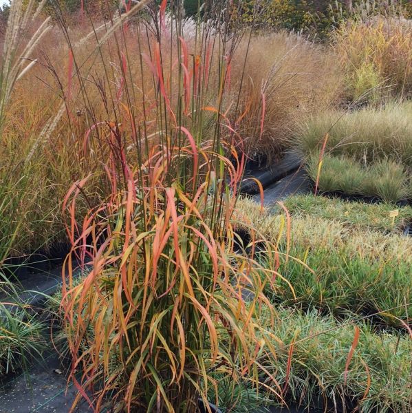 - Дополнительные преимущества: легко выращивать, отличная зимующая трава, засухоустойчив, многолетник, осенняя огненная окраска листьев, густой габитус, листья значительно шире, чем у других мискантусов, что делает окраску еще более привлекательной.