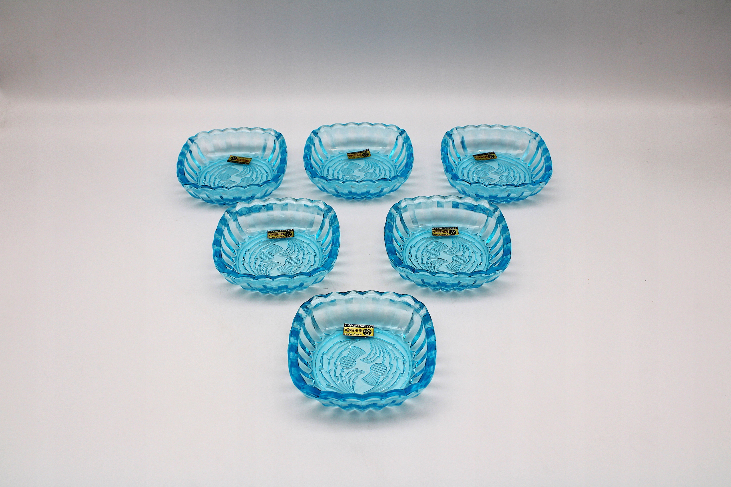MISECZKI DESEROWE 6 SZTUK SZKŁO BOHEMIA STARA CZECHOSŁOWACJA LATA-70 XX-w
