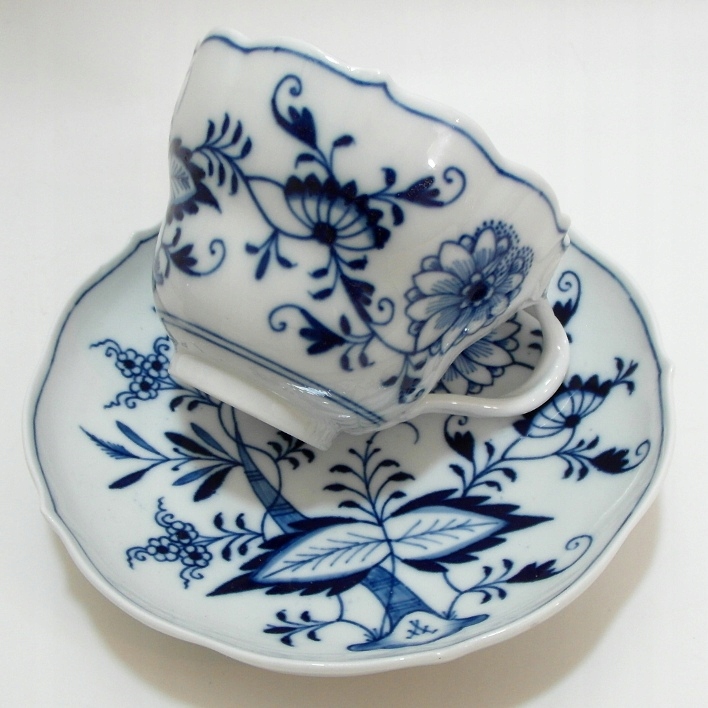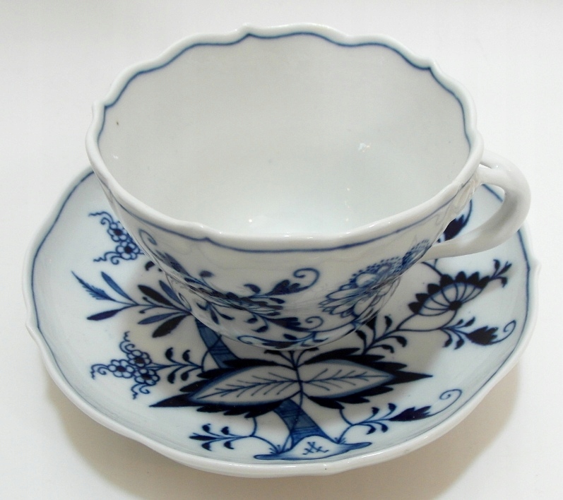Красивая старинная чашка из белого фарфора, украшенная узором из кобальтовой луковицы. БОЛЬШАЯ ЧАШКА