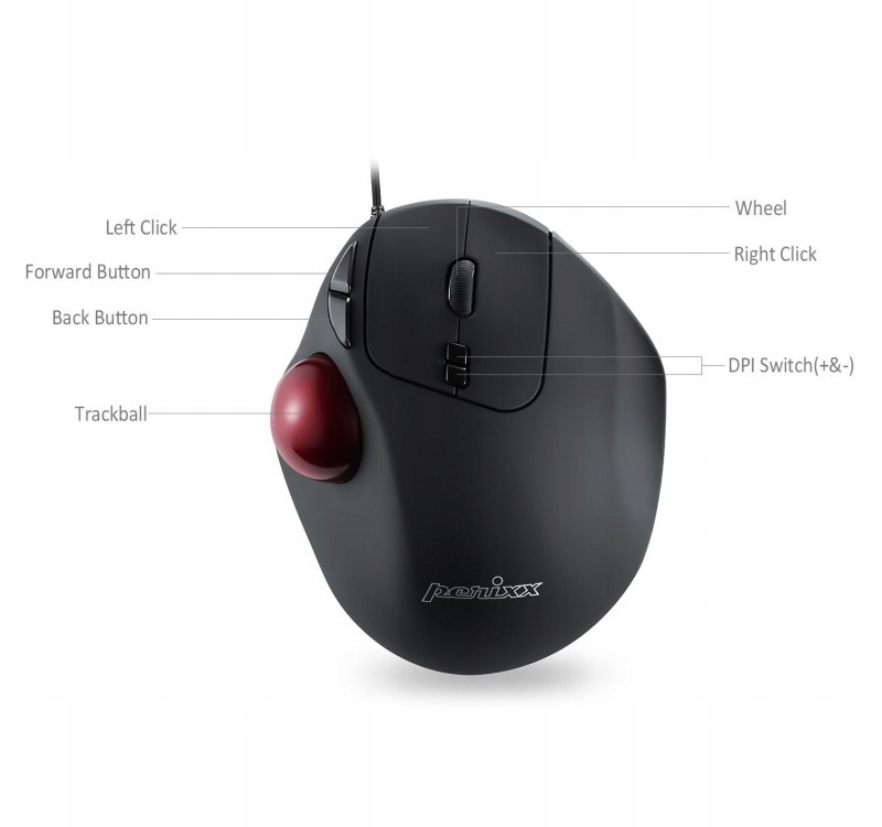 PERIXX PERIMICE 517 TRACKBALL оснащен эргономичным дизайном и трекболом диаметром 34 мм, обеспечивающим удобство использования для правшей. Эта мышь особенно рекомендуется при повторяющихся травмах, например, офисным работникам, геймерам или пользователям Интернета. Благодаря этому можно предотвратить так называемую рука мыши или теннисный локоть (синдром RSI).