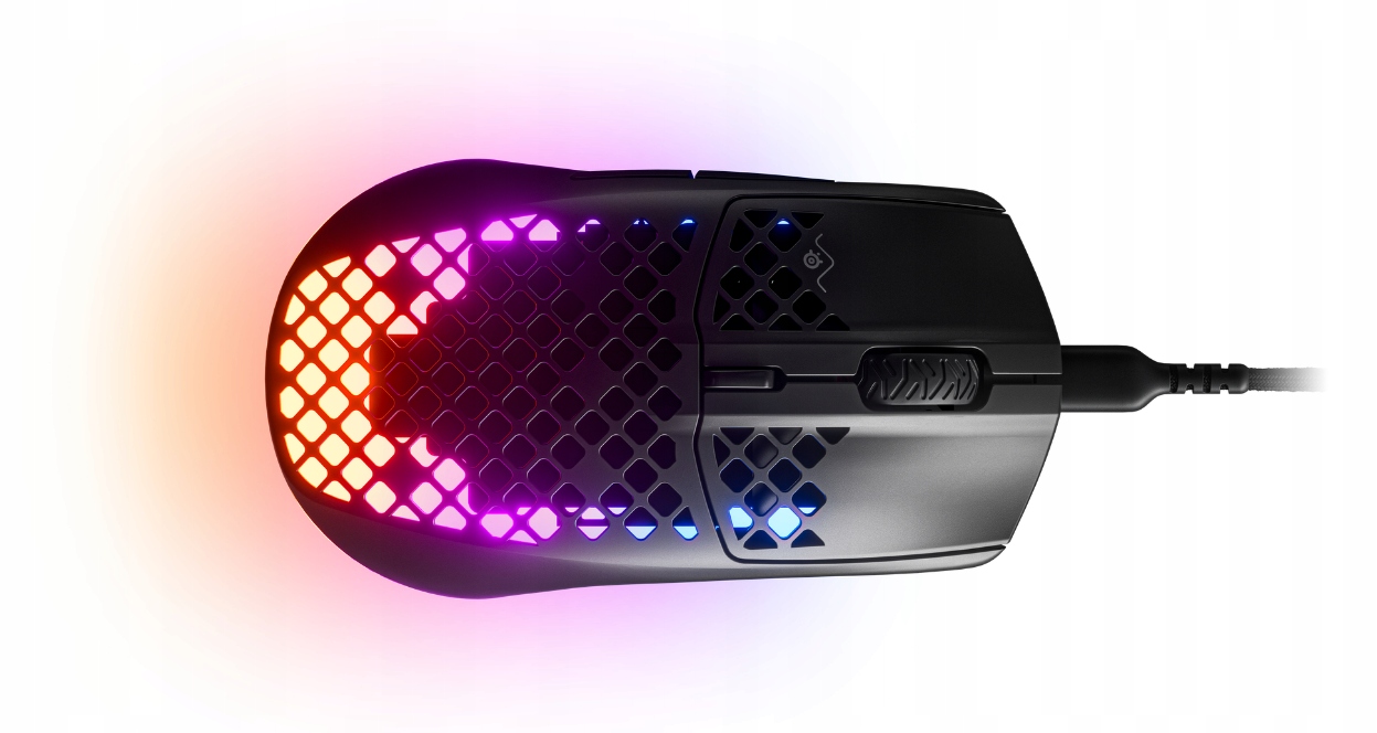 Оптическая персонализация мыши STEELSERIES Aerox 3 Onyx также касается цвета ее подсветки. Имеет подсветку снизу и по бокам.