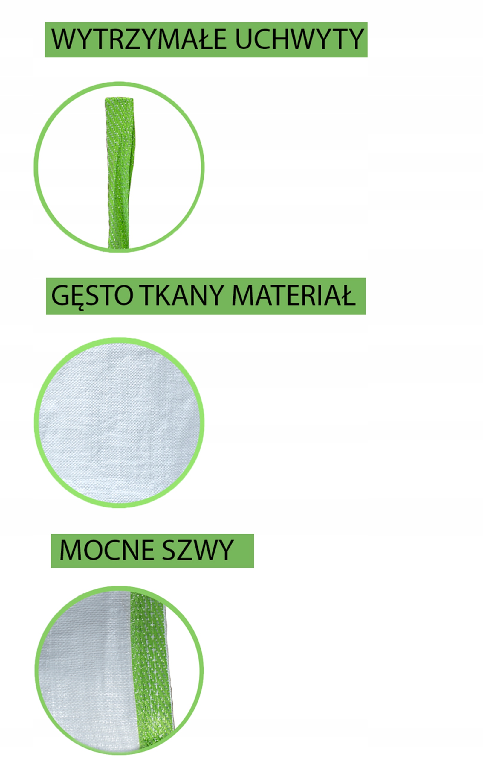 - Мешок выдерживает нагрузку до 1000 кг, что позволяет перевозить очень большие объемы отходов или мусора.