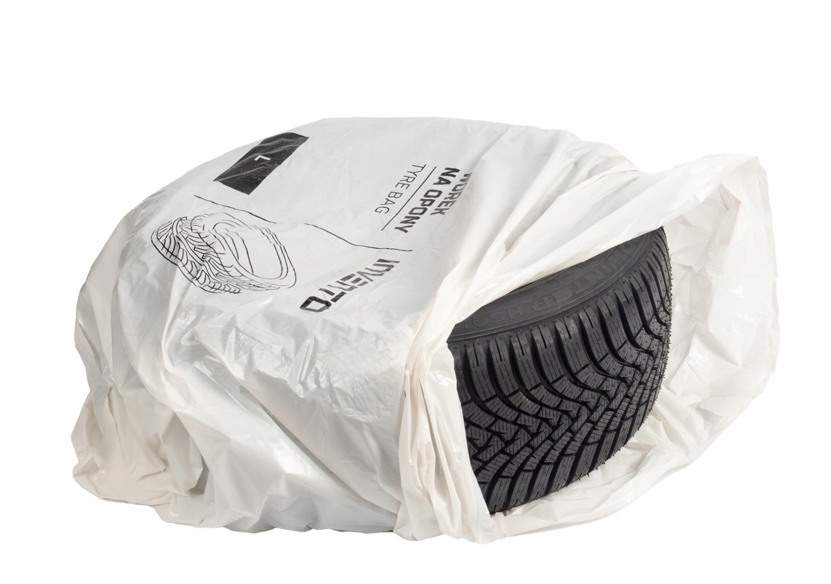 Белые пакеты из фольги толщиной до 40 микрон и размером 1000 х 1000 мм защищают шины от атмосферных воздействий во время хранения.